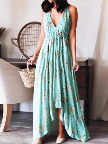 • Floral Print ,Backless Sexy Beach Bohemian Dress,, High-Low Boho Dress