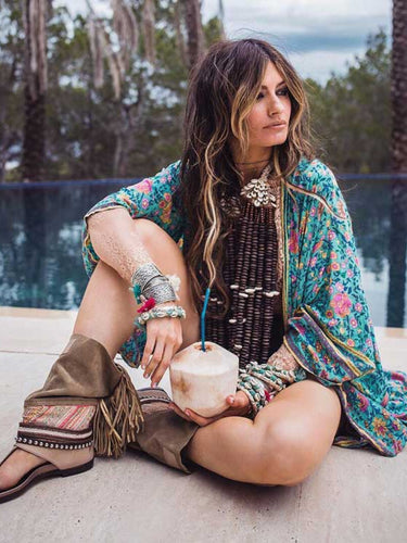 • Green Floral Print,bohemian Blouses,Boho Robe Kimono