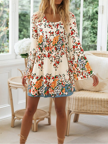 • Mini Dress, Boho dress, Porcelain Floral Print