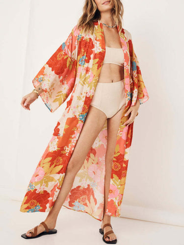 Floral Print,Bohemian Kimono,Beach Robe Bikini Cover-ups