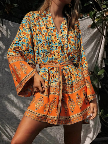 Floral Print Short Robe,Boho Cover-ups