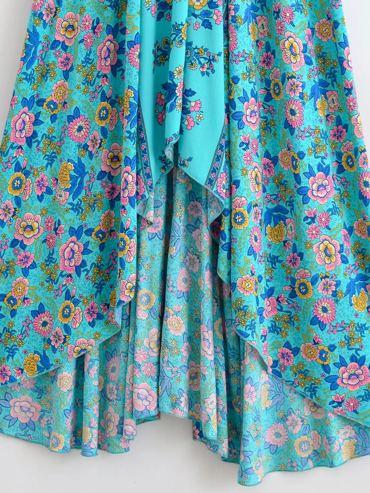 Peacock Green ,Backless Sexy Maxi Dress,High-Low Tassel Boho Dress – Boho Queens