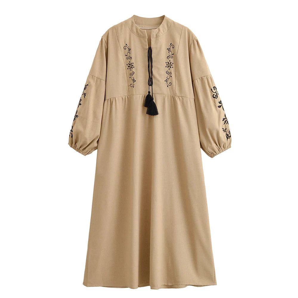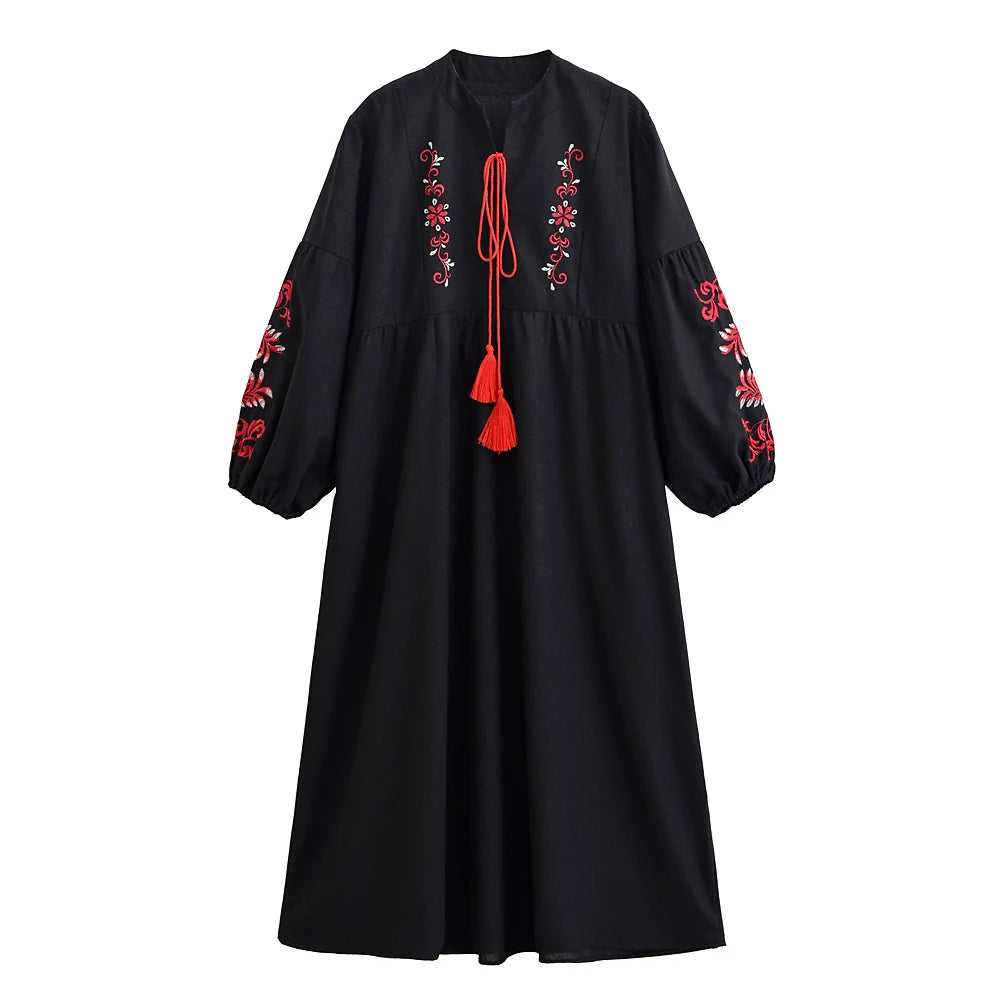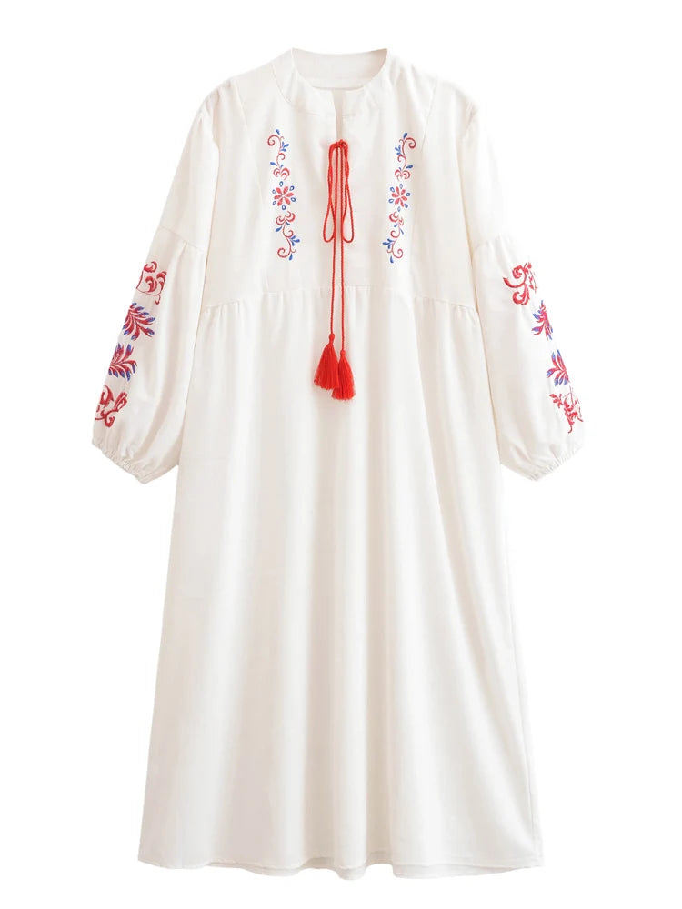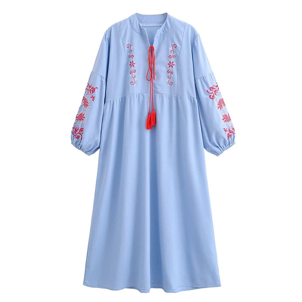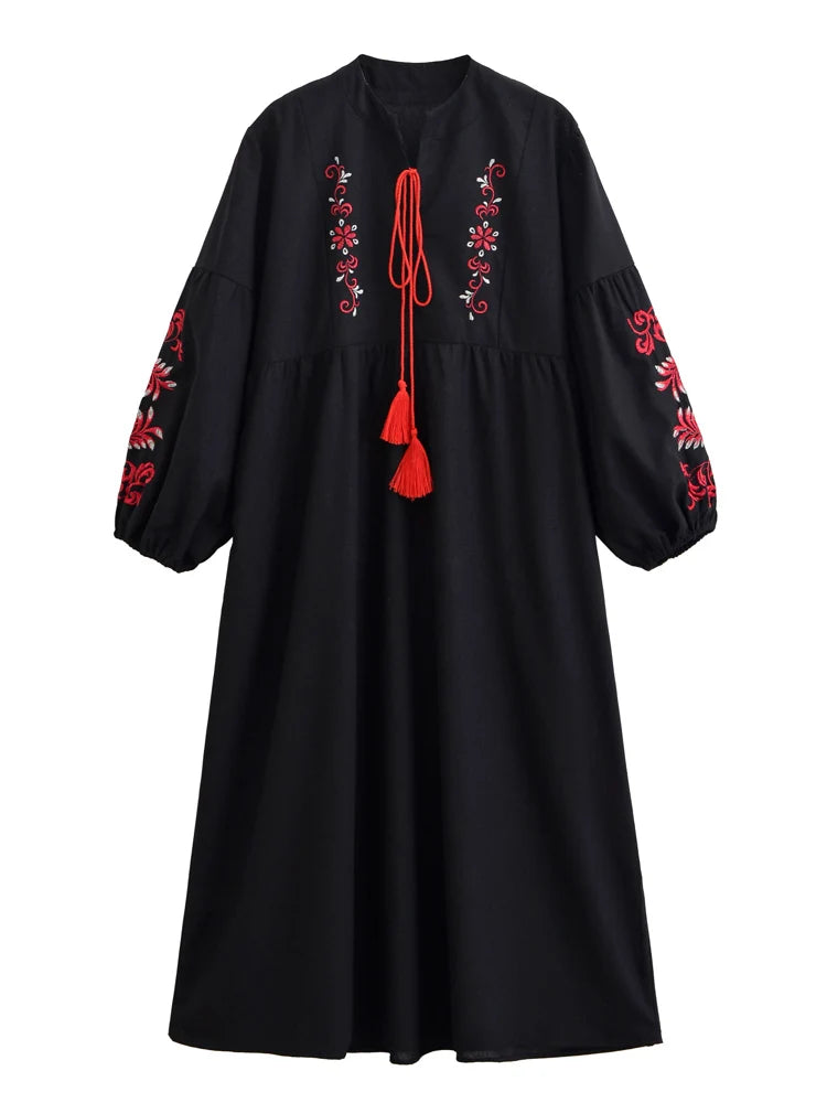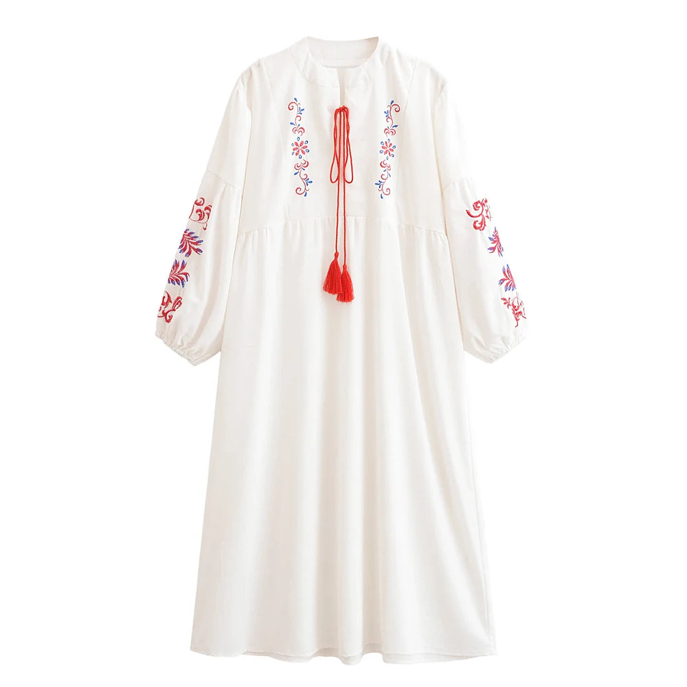 Retro Floral Emberoidery, Linen Cotton Vacation, Boho Maxi Dress – Boho Queens