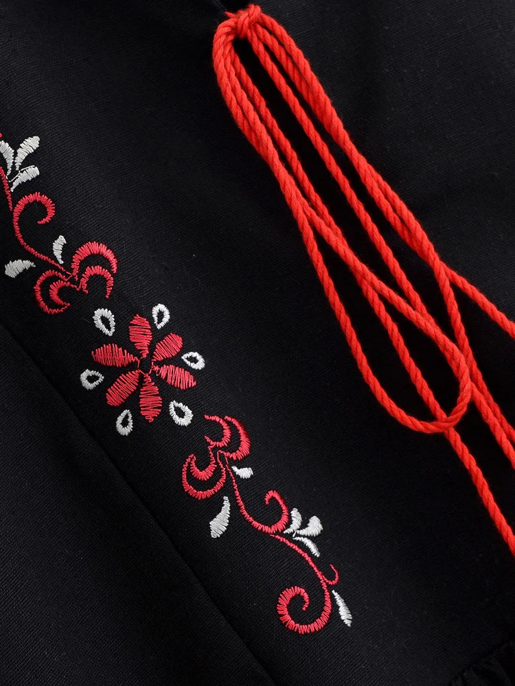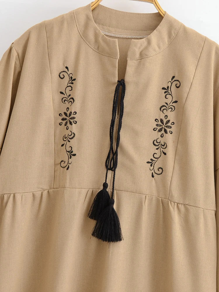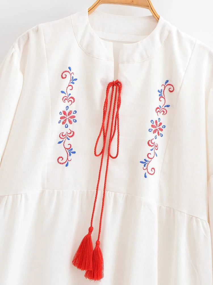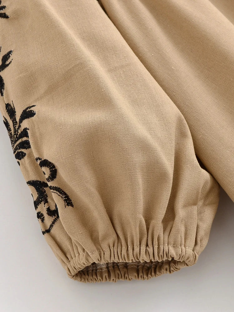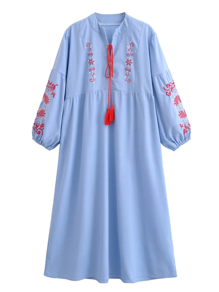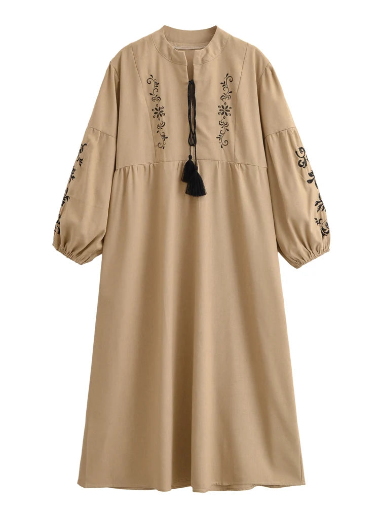Retro Floral Emberoidery, Linen Cotton Vacation, Boho Maxi Dress – Boho Queens
