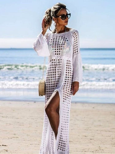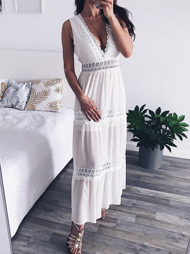 • White Hollow Out,Boho Maxi Dress,Bohemian Sundress