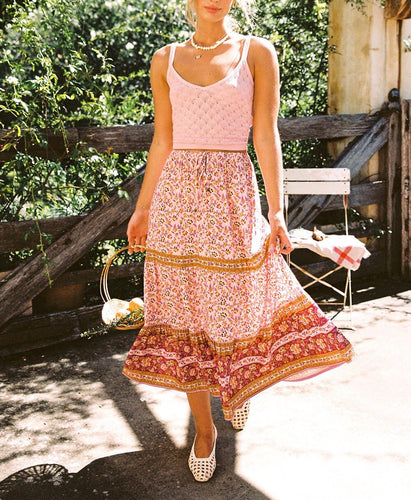 Pink Floral Print,Bohemian Long Skirt,Boho Maxi Skirt