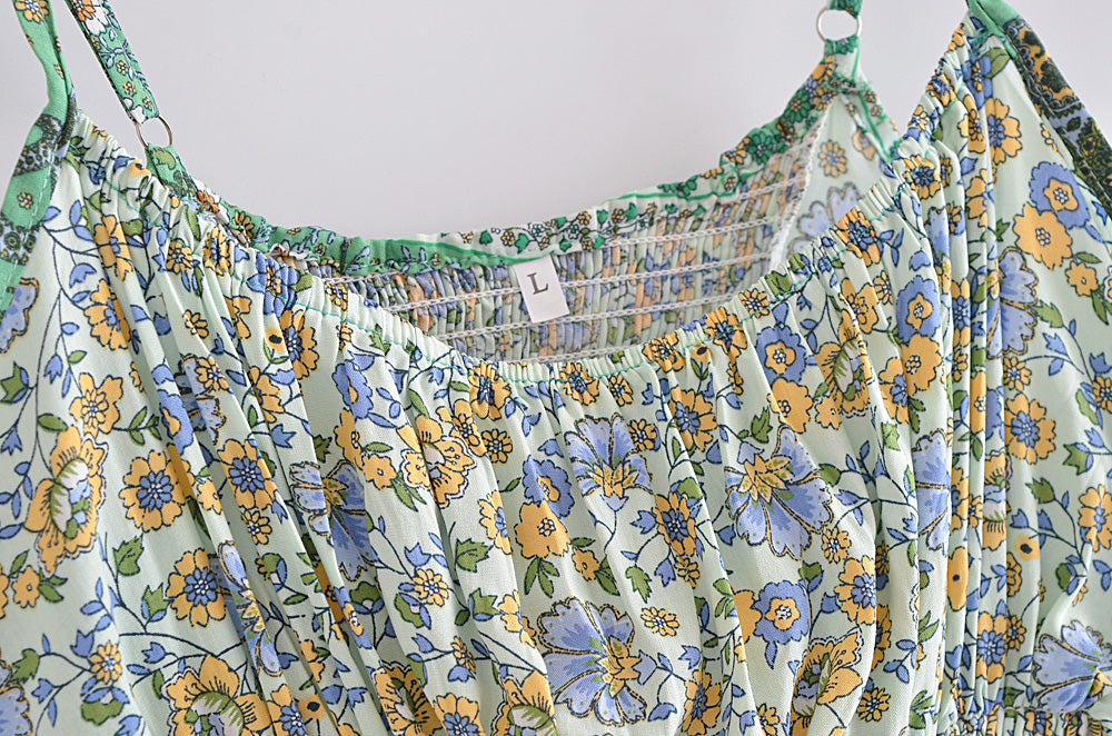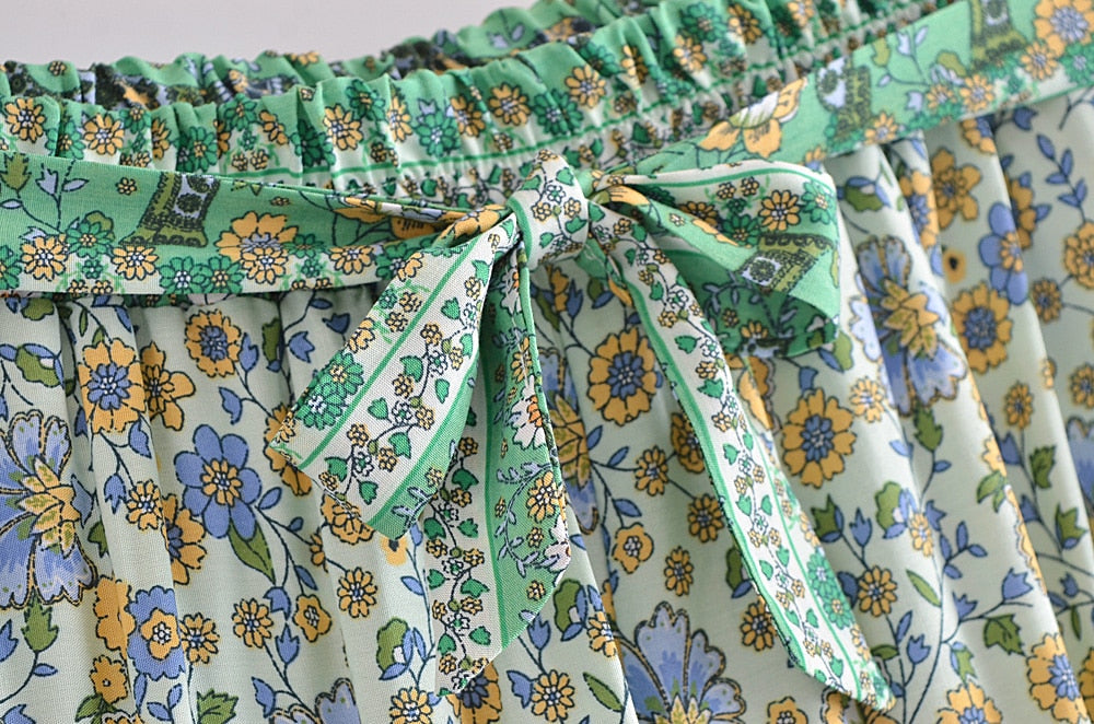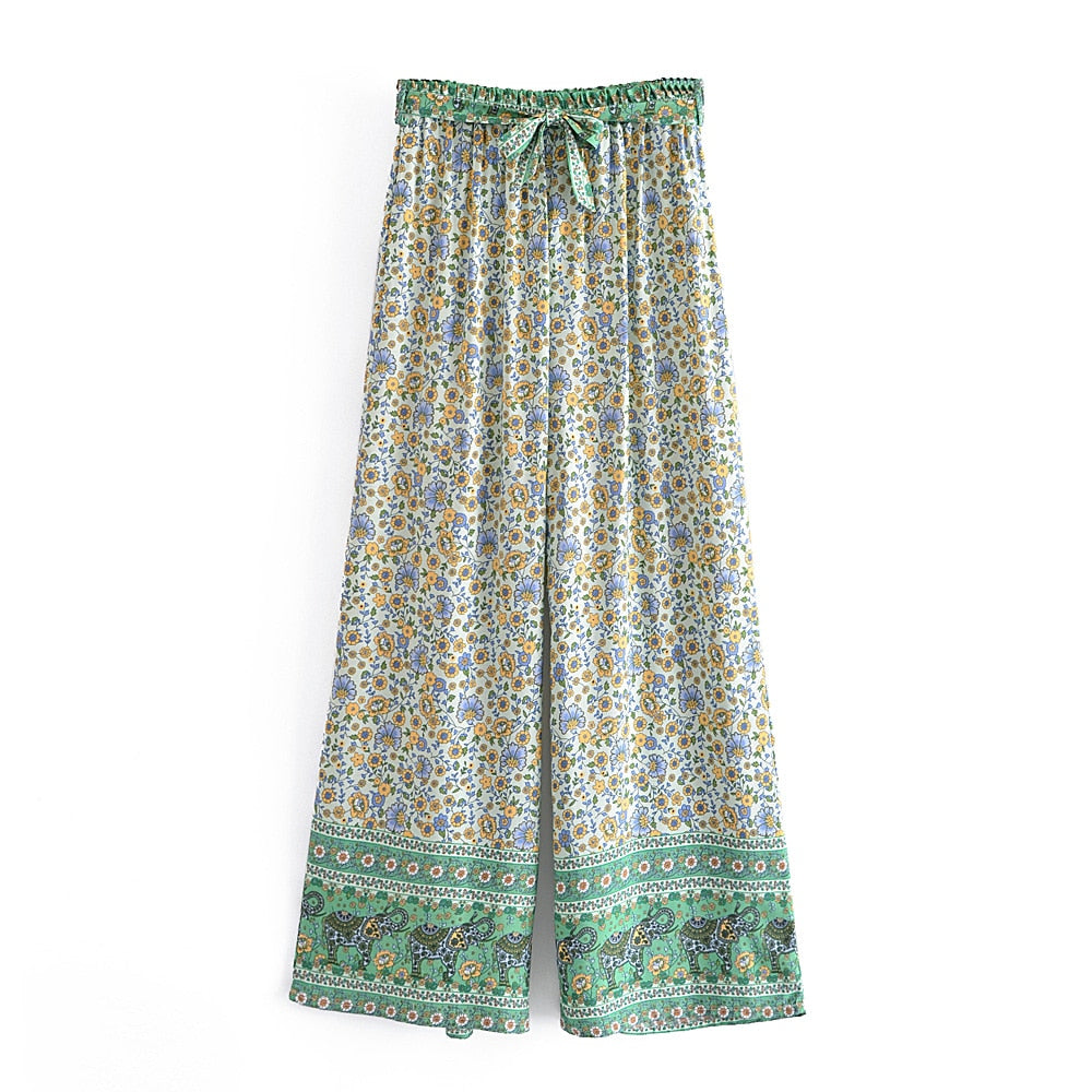 Boho Sets,Long Pants and Tops,Green Floral Print – Boho Queens