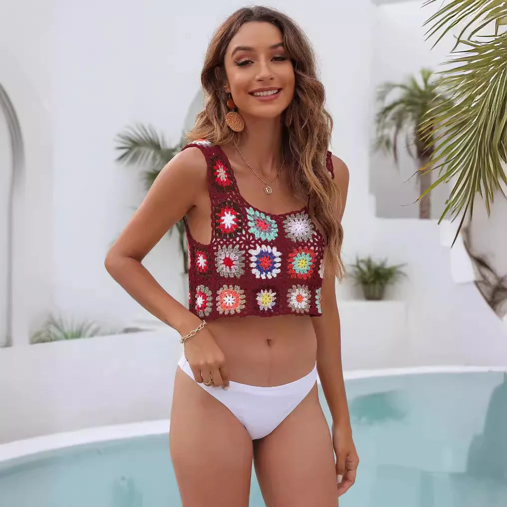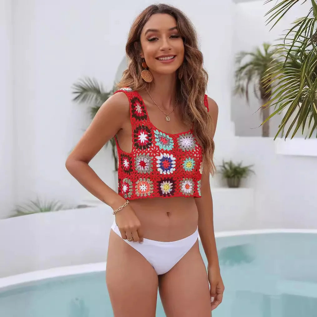 Hollow Out Tank Tops, Bohemian Vest,Rainbow Tassel Knitted Camis