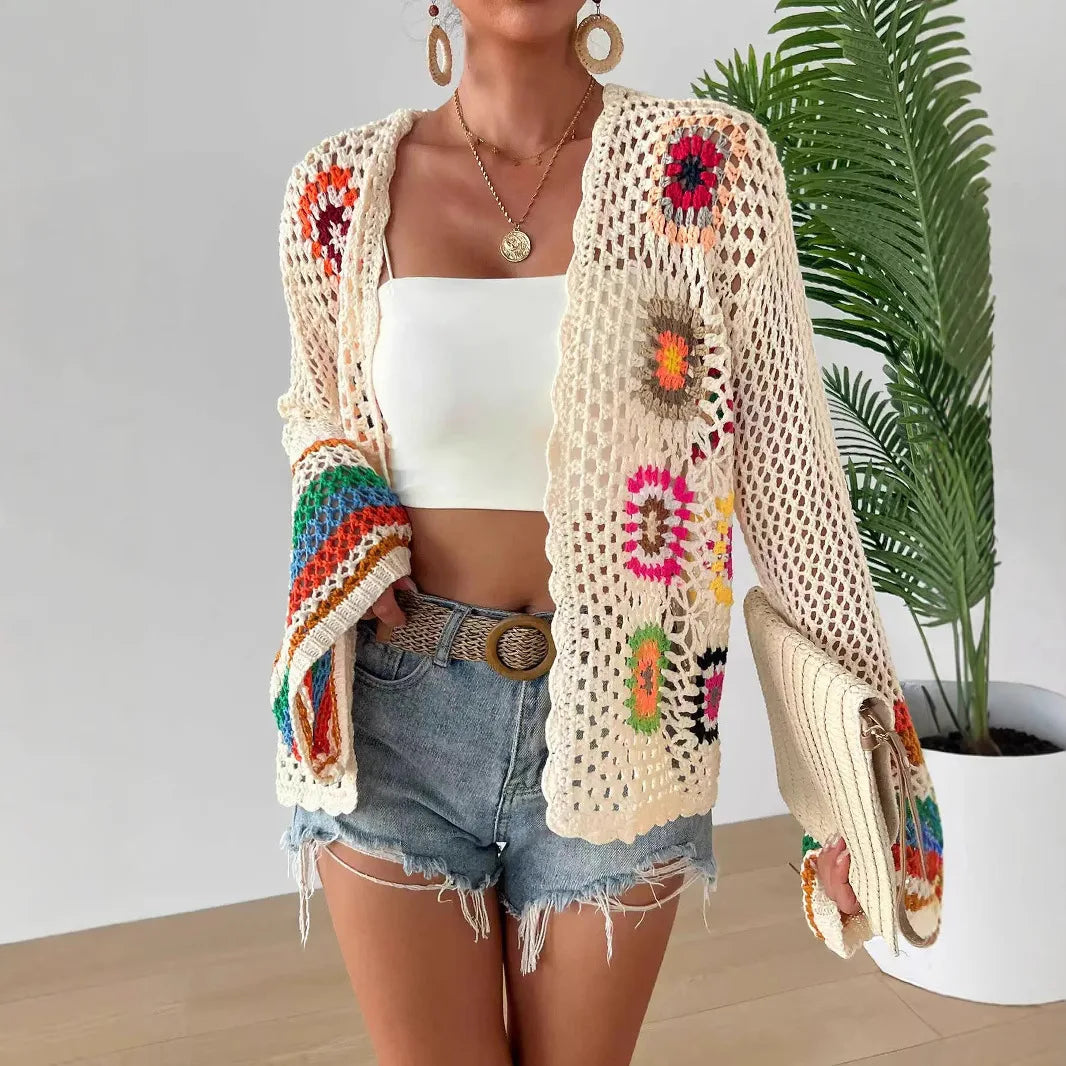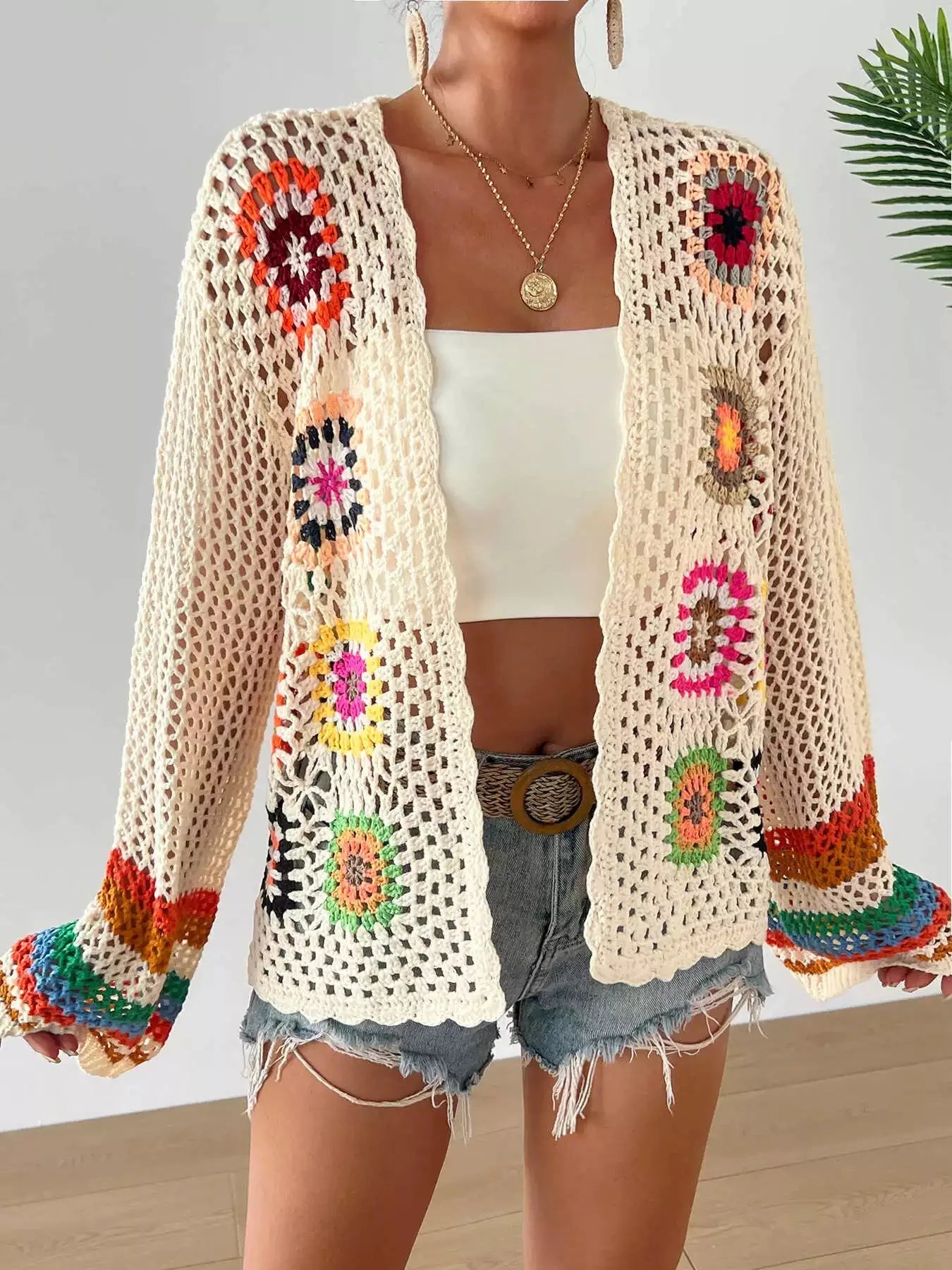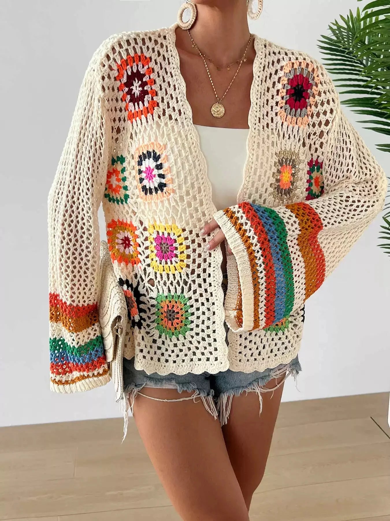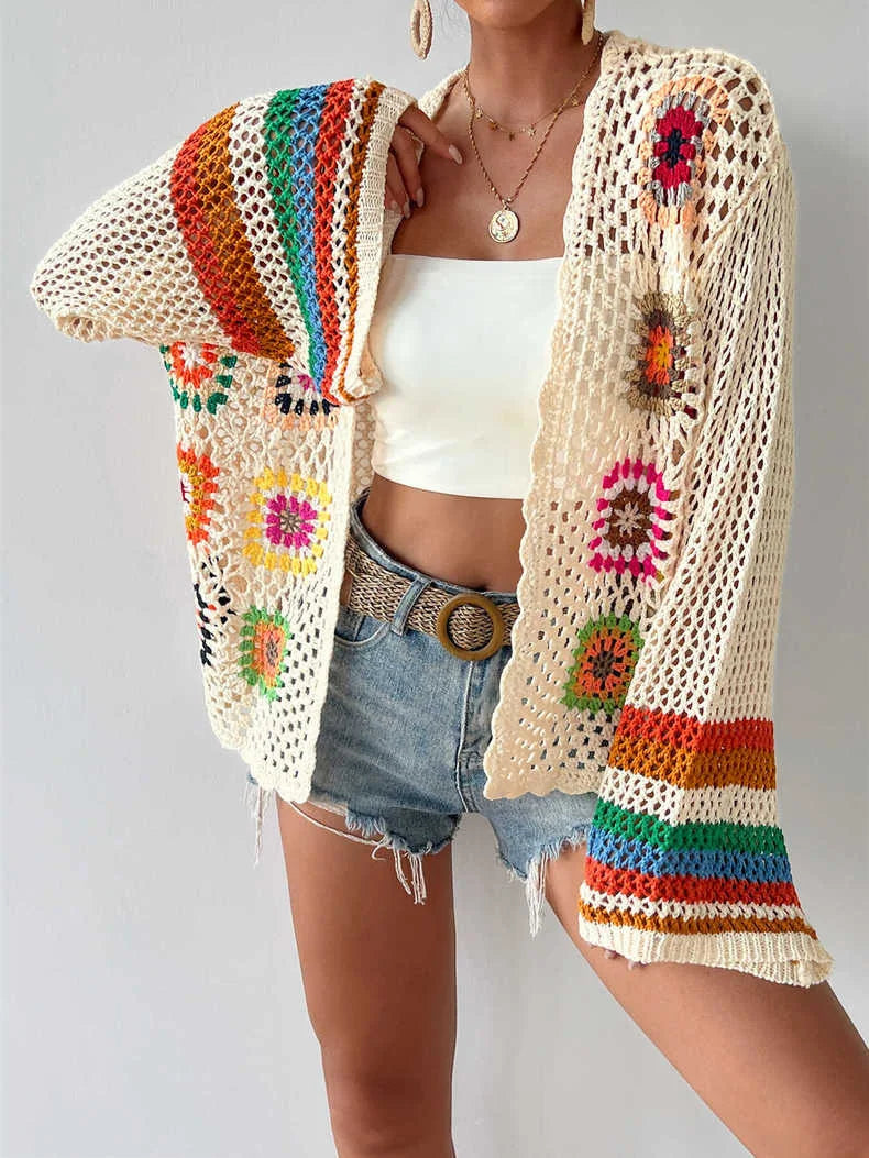 Retro Crochet Rainbow ,Long-sleeved Cardigan ,Handmade Crochet Knitted Cover-ups – Boho Queens