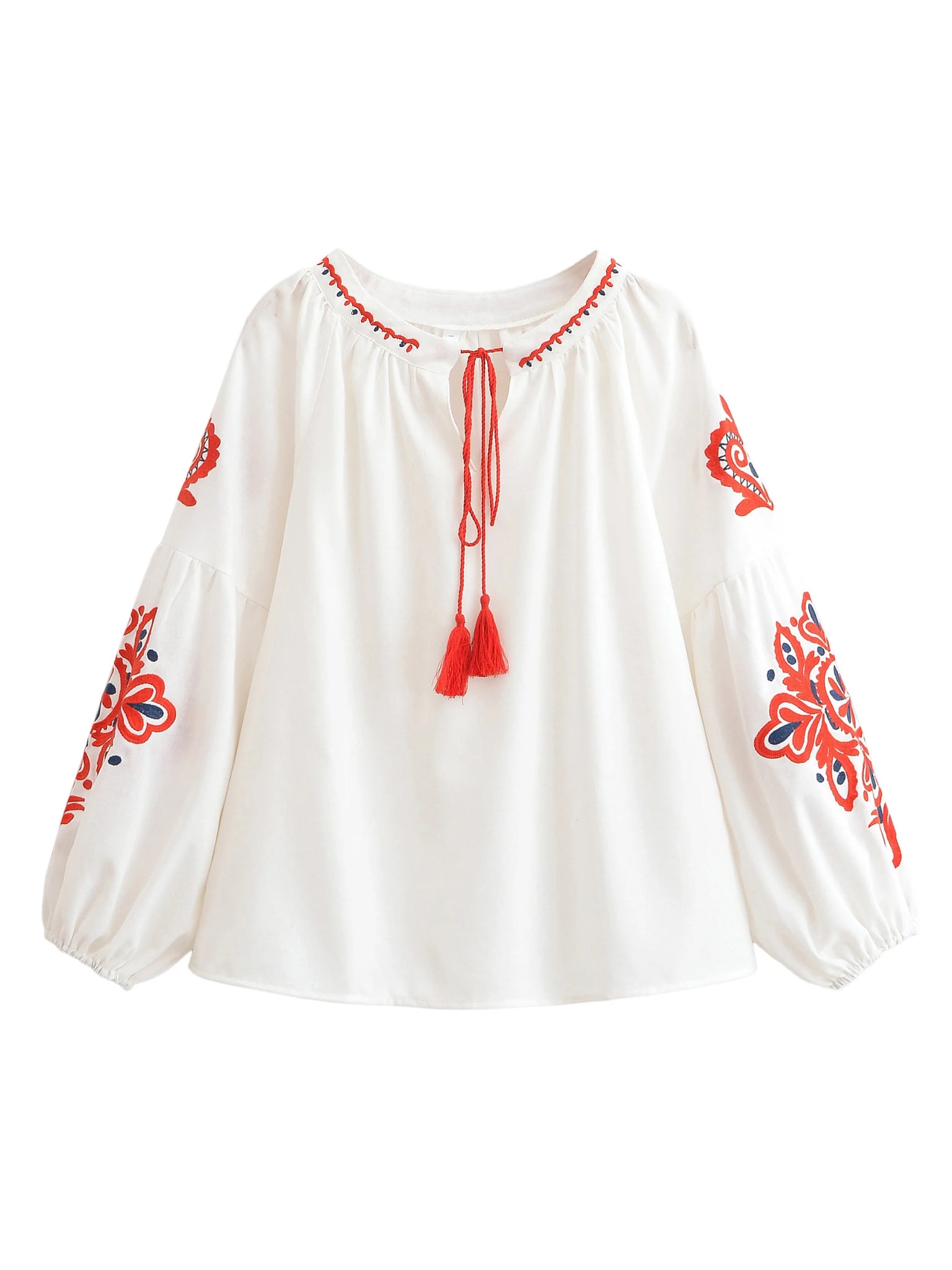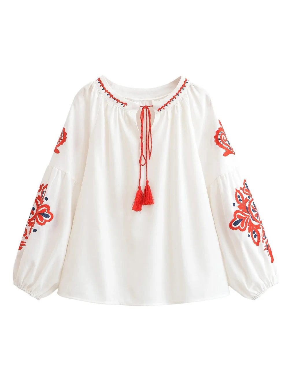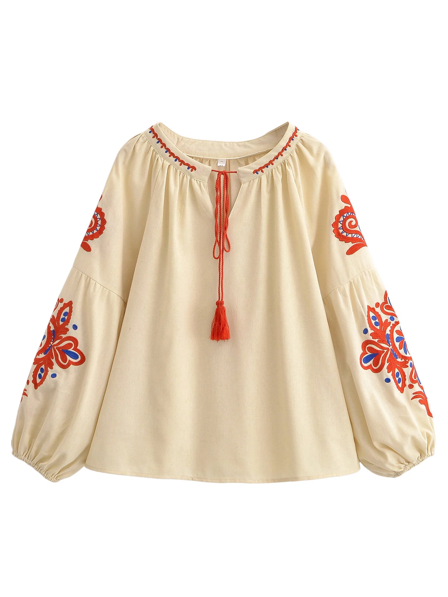 🎀 Tassel Tie V-Neck: The classic peasant-style neckline features playful tassel ties. Wear it tied for a modest look or open for a breezy V-neck style.