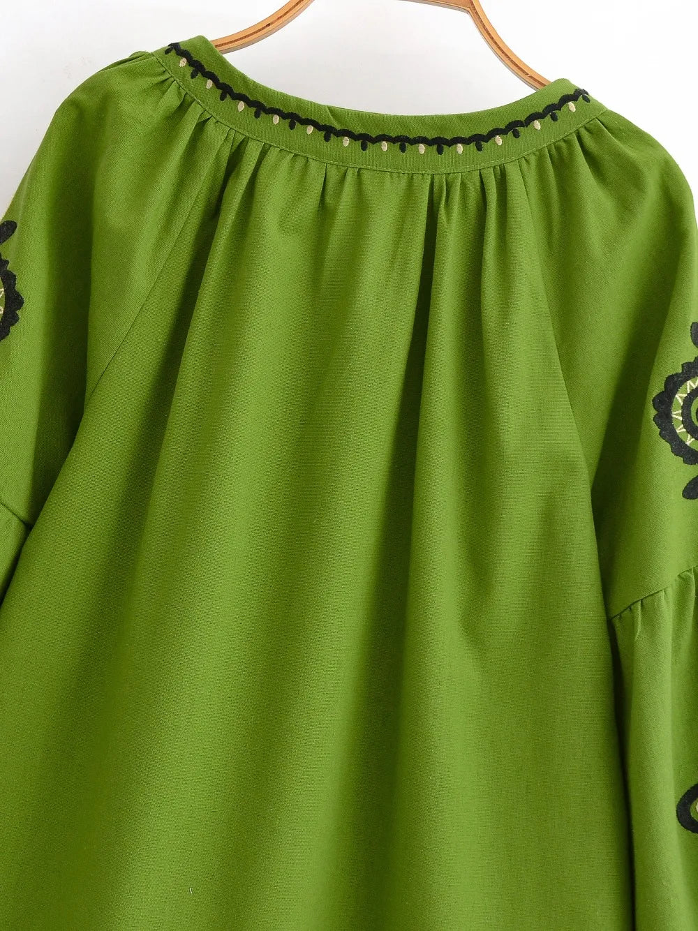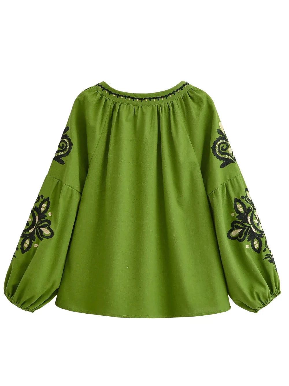 💃 Romantic Lantern Sleeves: The loose, billowy puff sleeves (lantern style) offer a relaxed silhouette that covers the arms flatteringly and allows for easy movement.