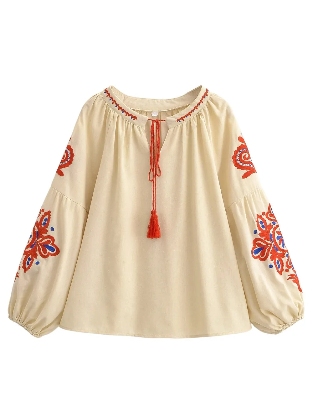 Elevate your wardrobe with this stunning Bohemian Floral Embroidered Blouse. Designed for the modern woman who loves a touch of vintage flair, this top combines the comfort of natural fabrics with the artistic beauty of ethnic craftsmanship. Whether you are heading to a music festival, a beach vacation, or just a casual brunch, this shirt is your perfect statement piece.