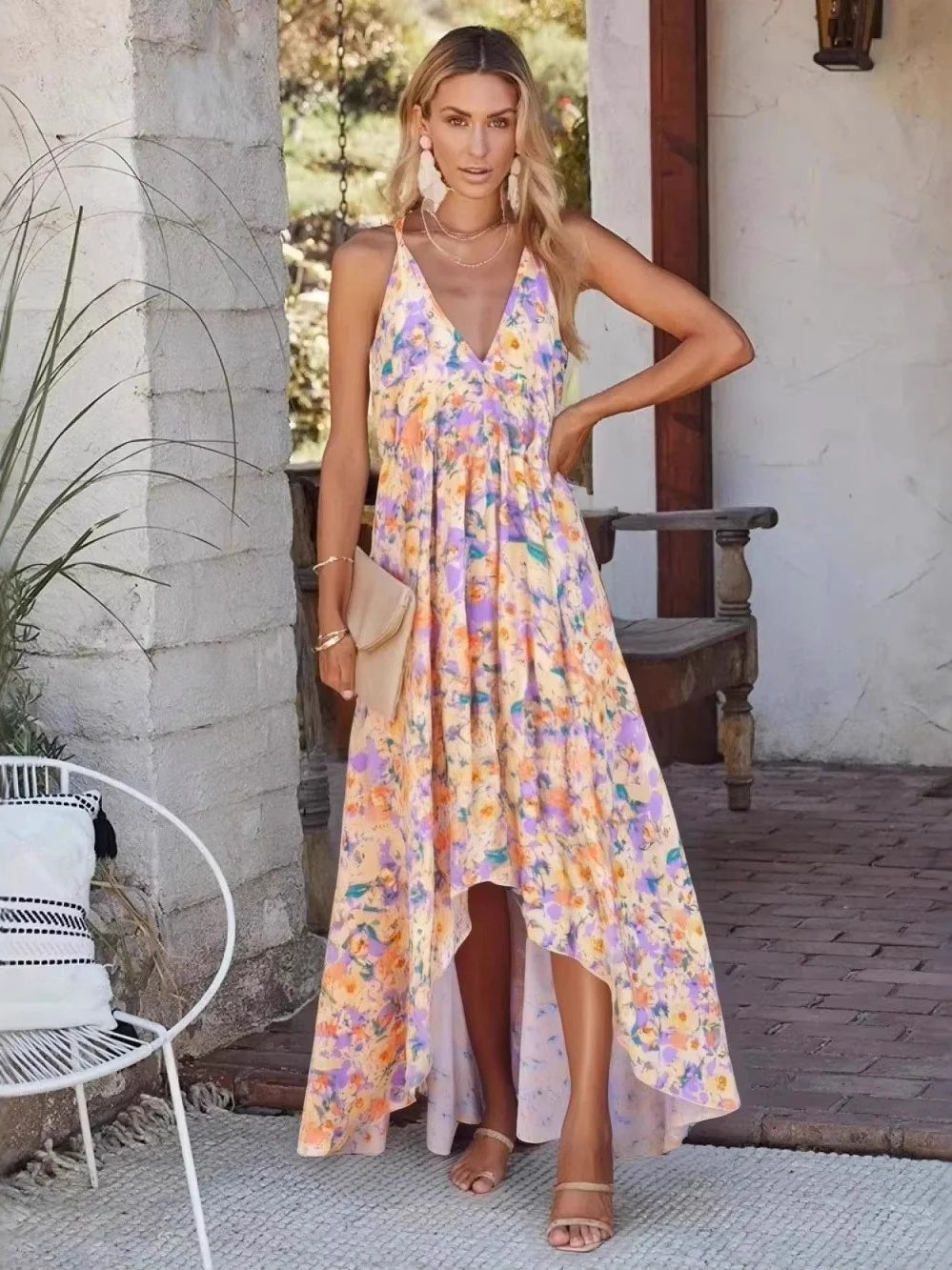 Wild Floral ,Open Back,Strapless Boho Dress – Boho Queens