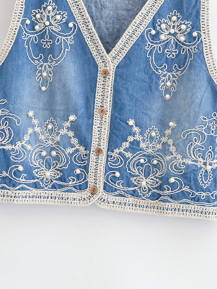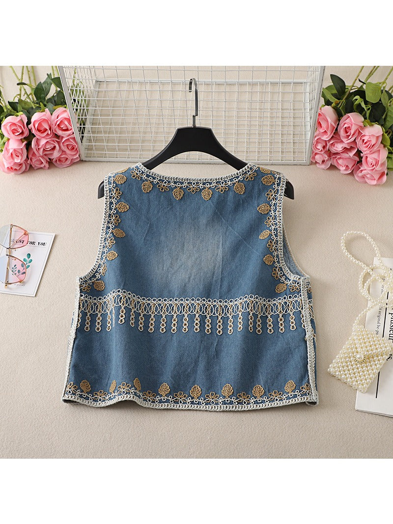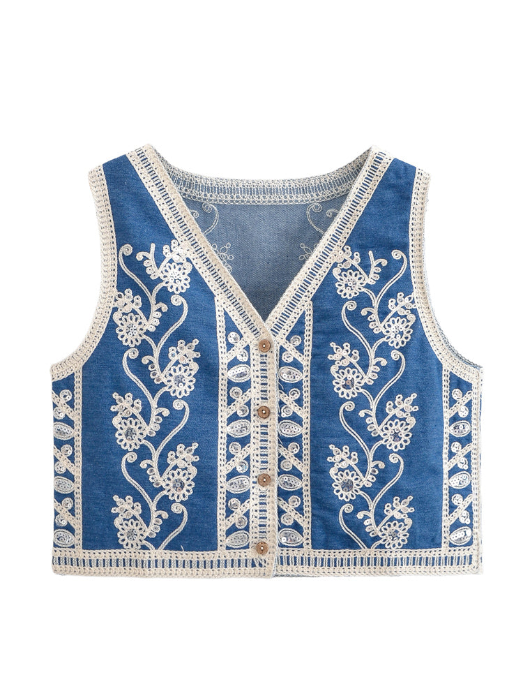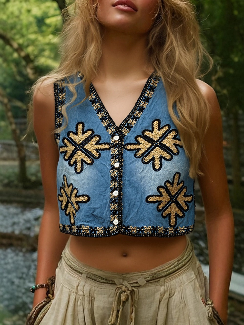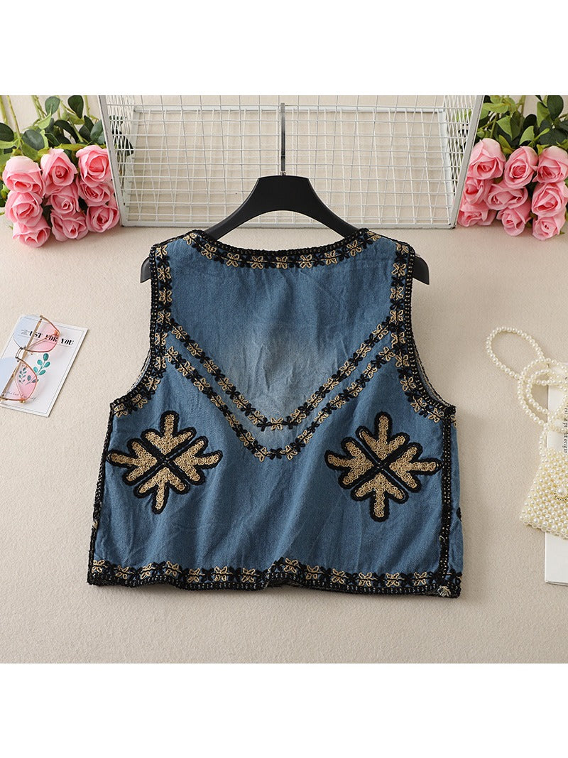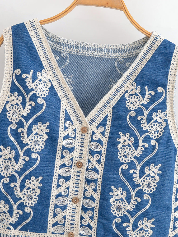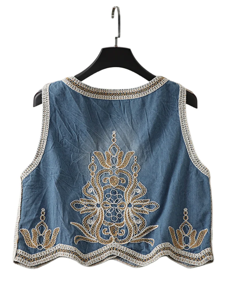 Denim Embroidery ,Suspender Vest ,Sequin Vest Waistcoat – Boho Queens
