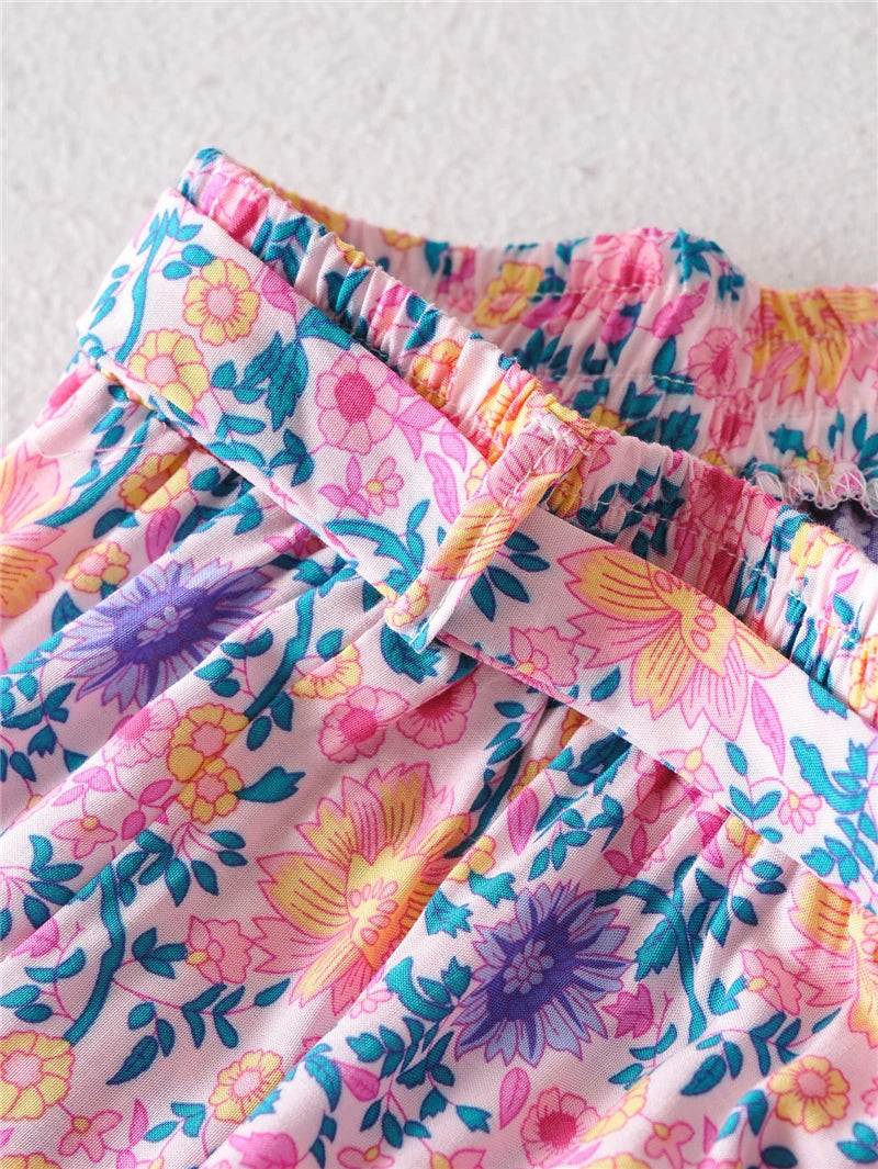 Pink Floral Print, Two Piece Outfits ,Boho Sets