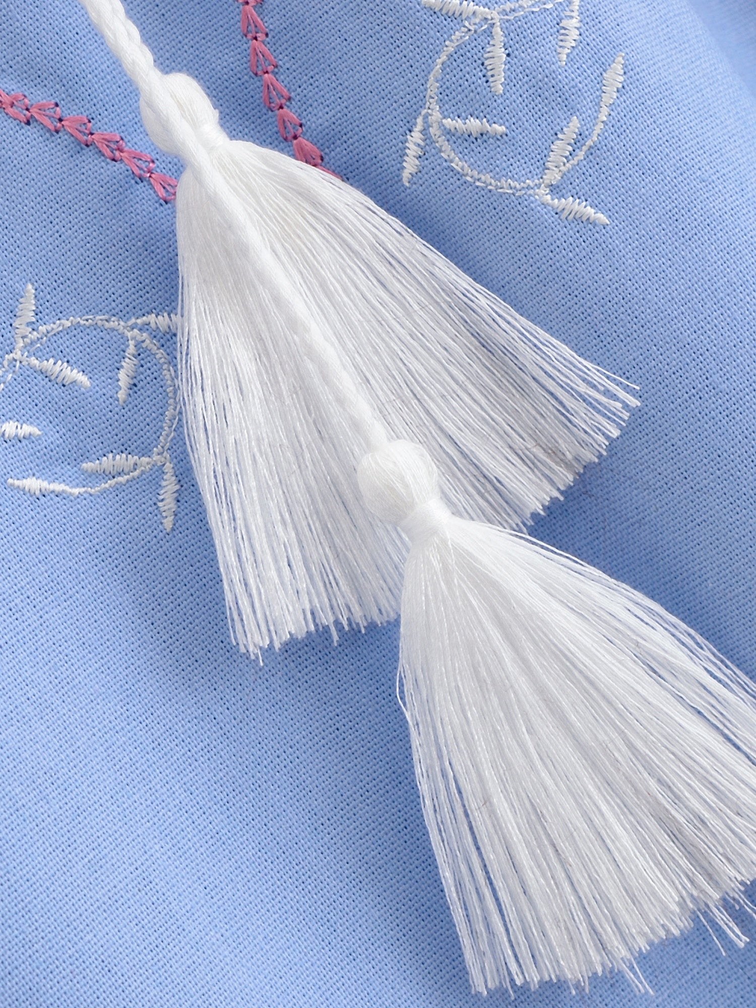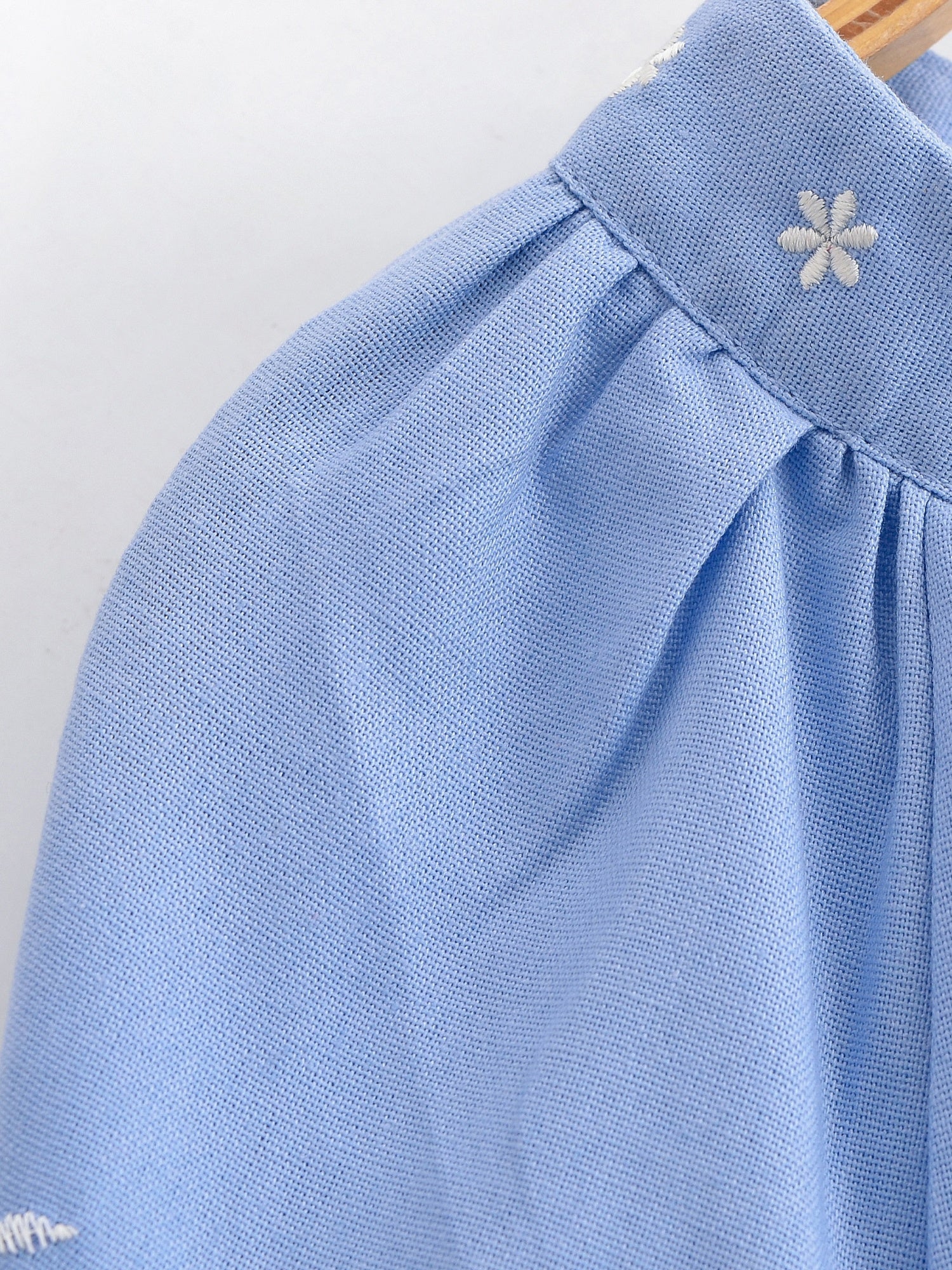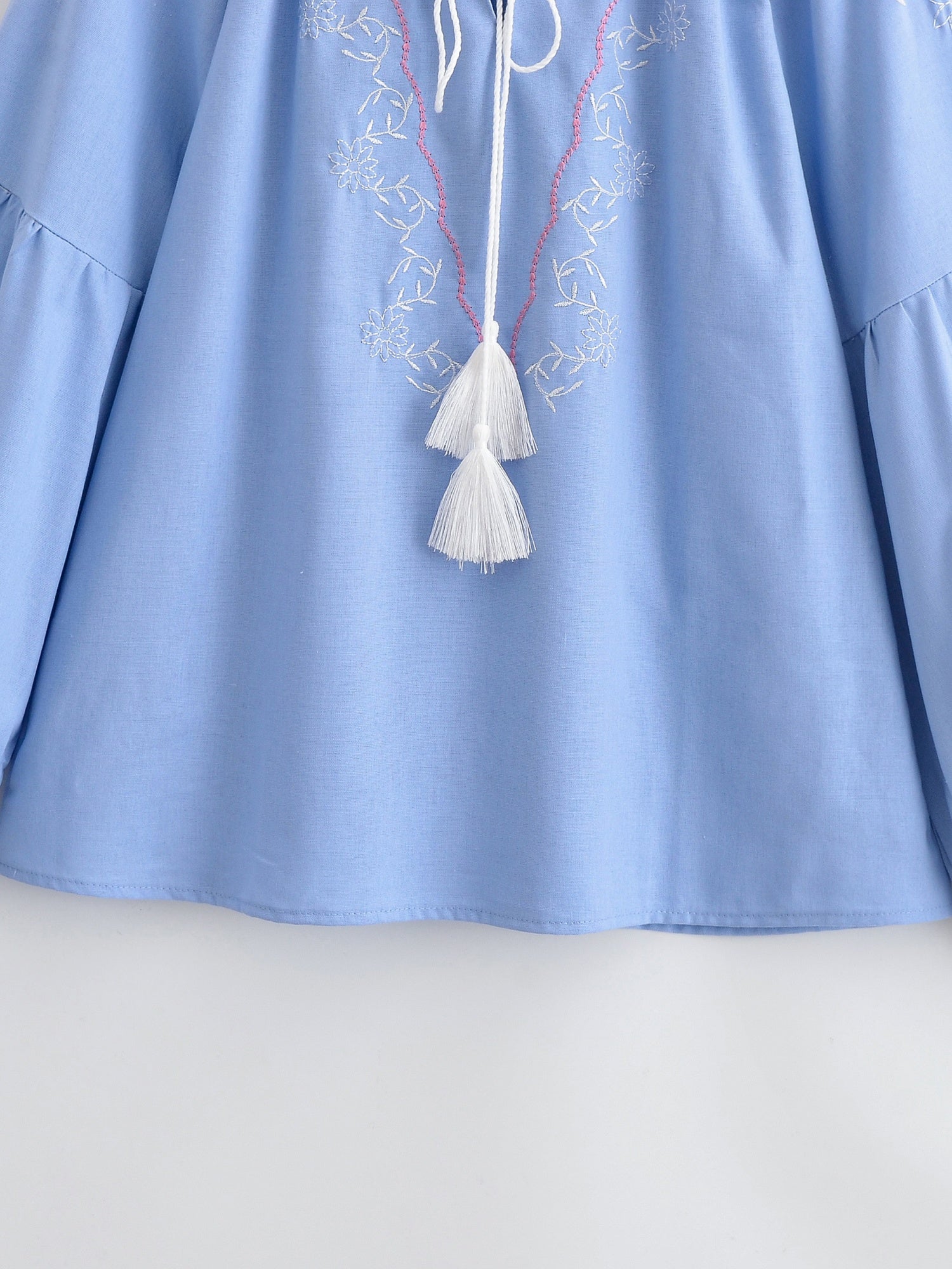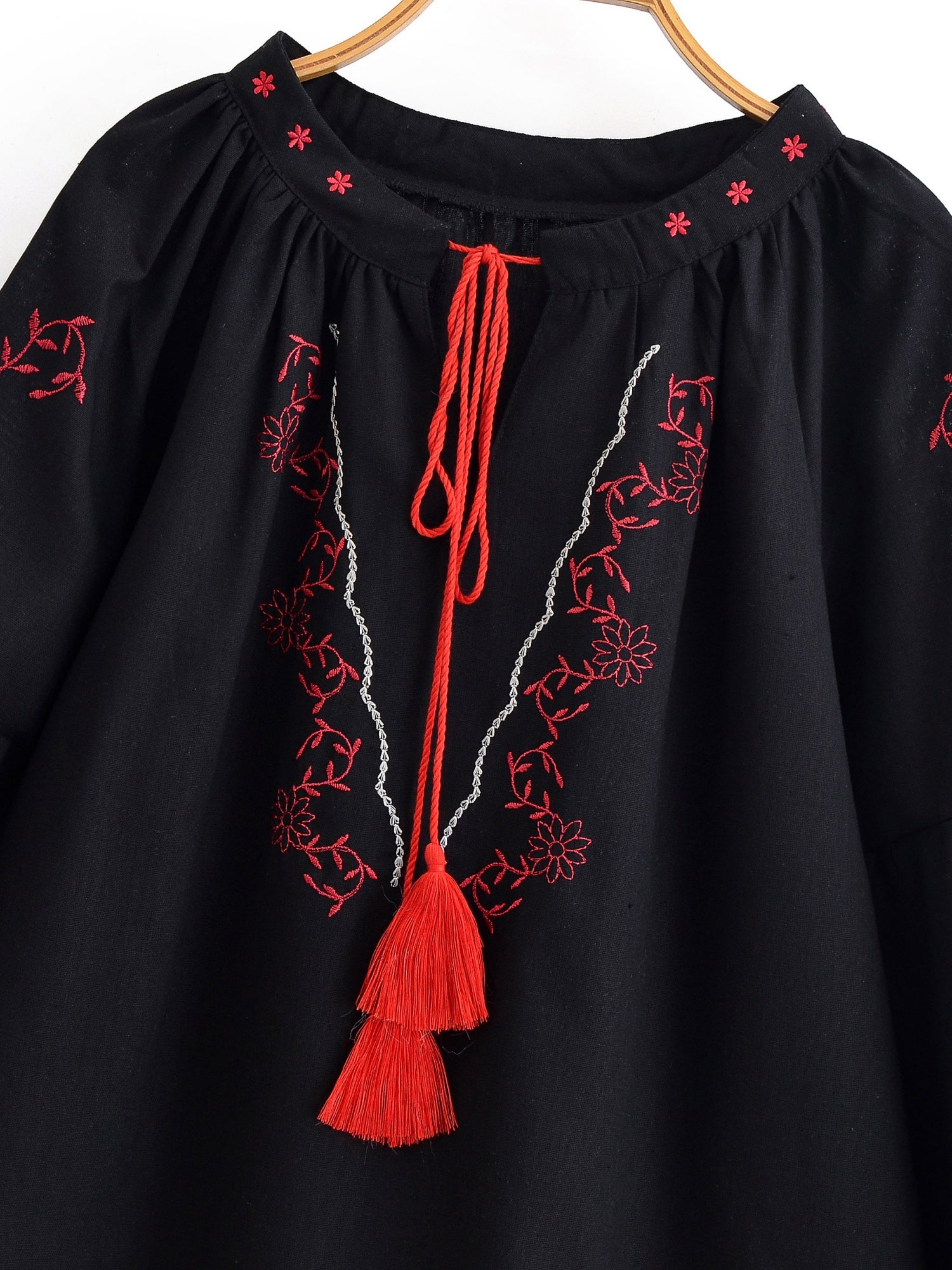 Retro Floral Embroidered, Linen Cotton Blouse ,Lace-up Boho Shirt