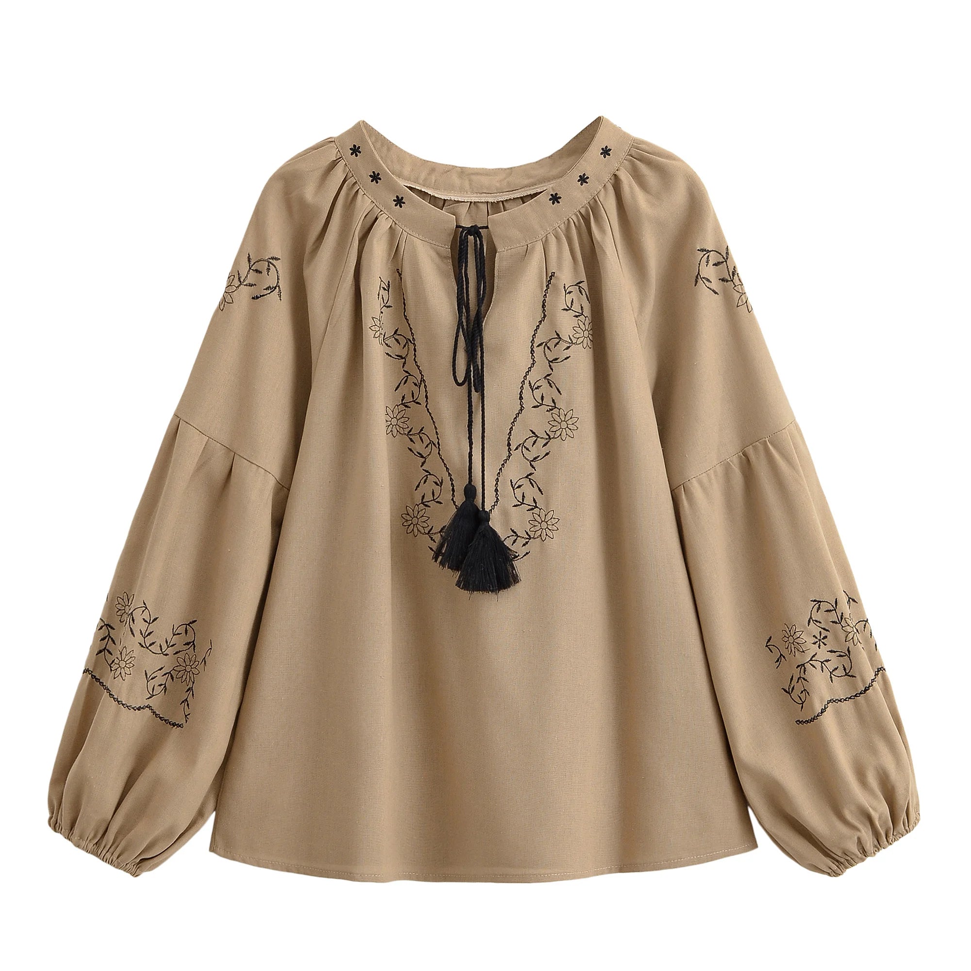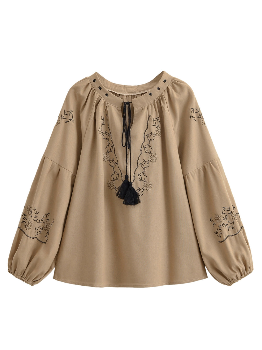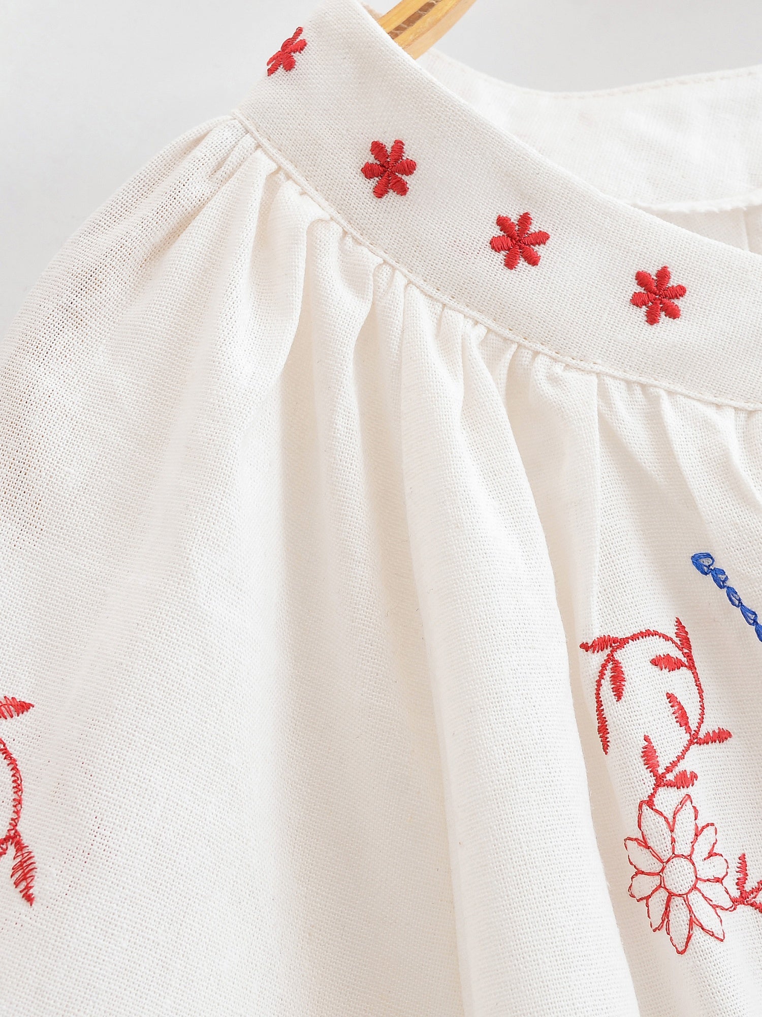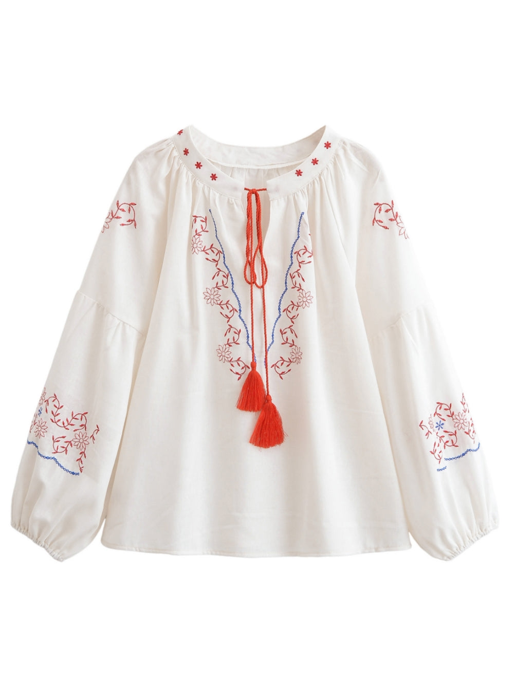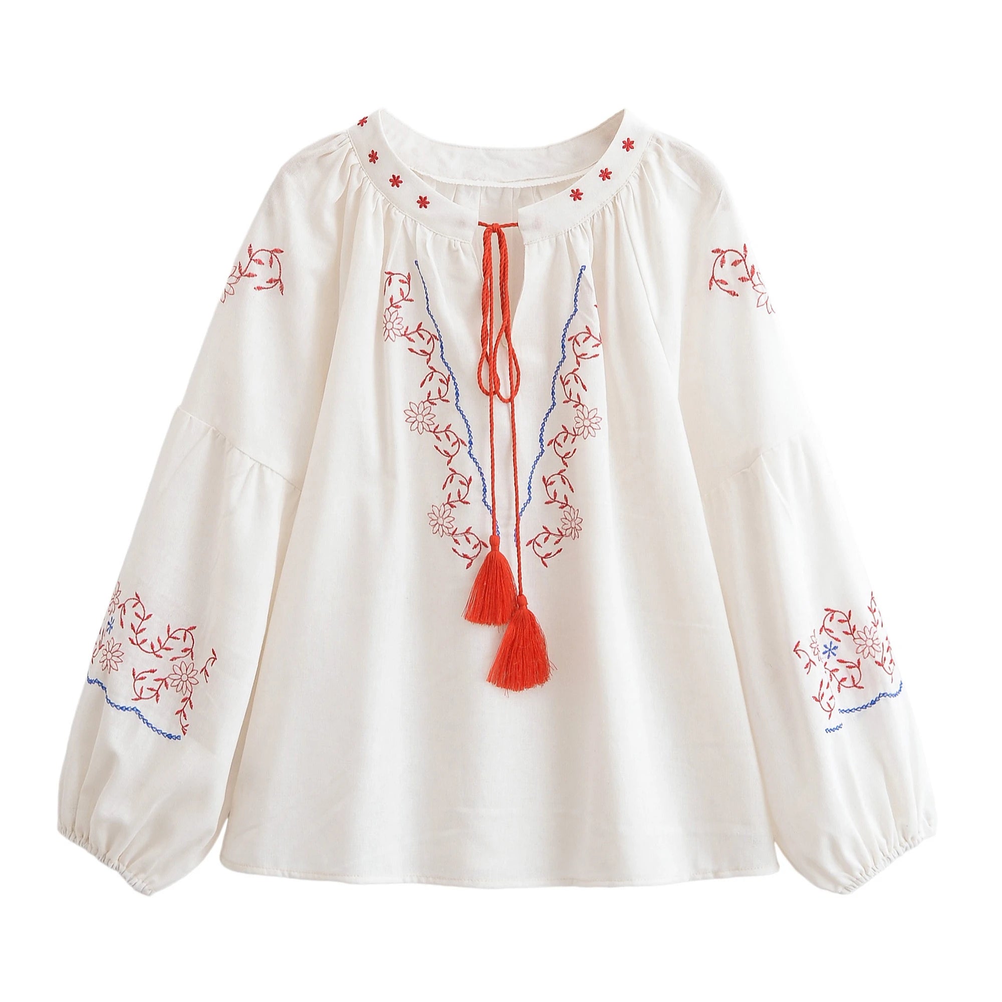 Retro Floral Embroidered, Linen Cotton Blouse ,Lace-up Boho Shirt – Boho Queens
