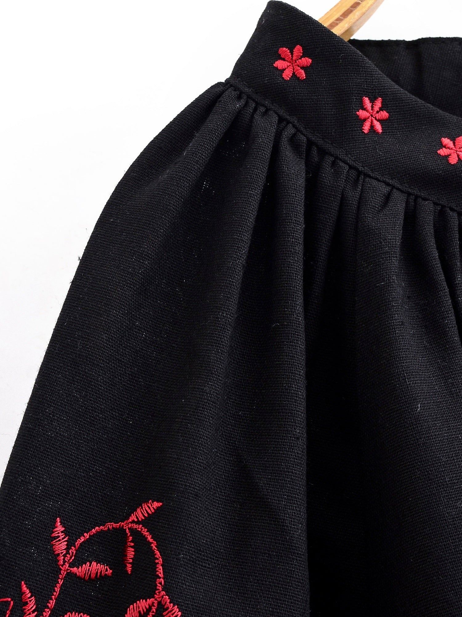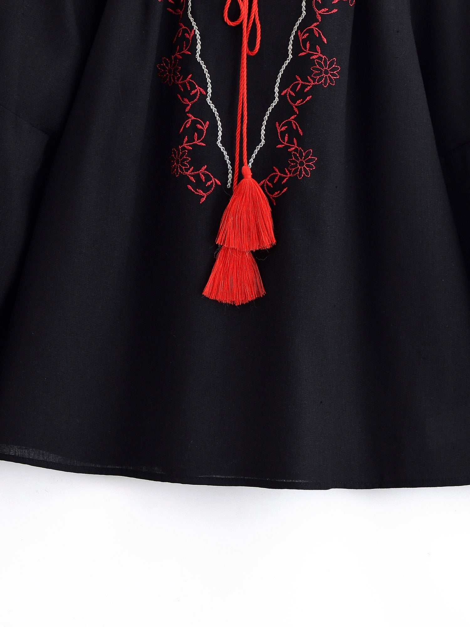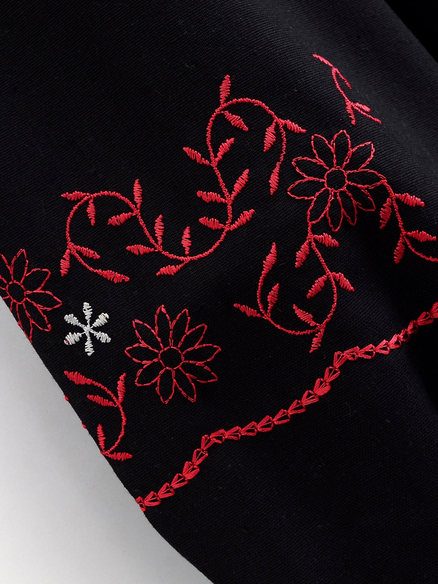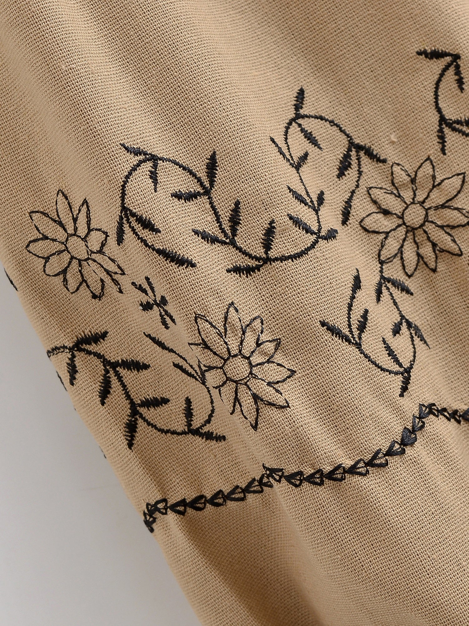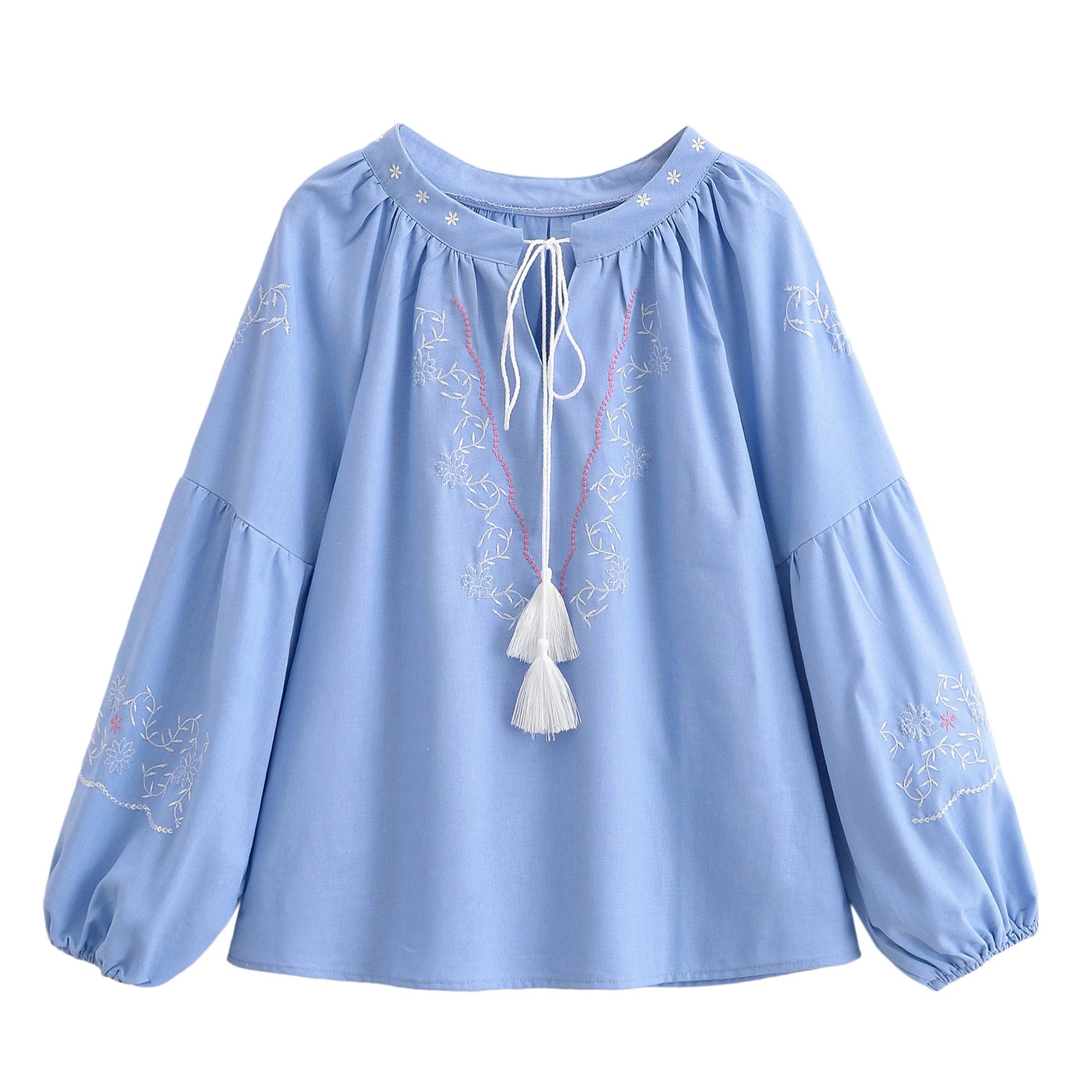 Retro Floral Embroidered, Linen Cotton Blouse ,Lace-up Boho Shirt – Boho Queens