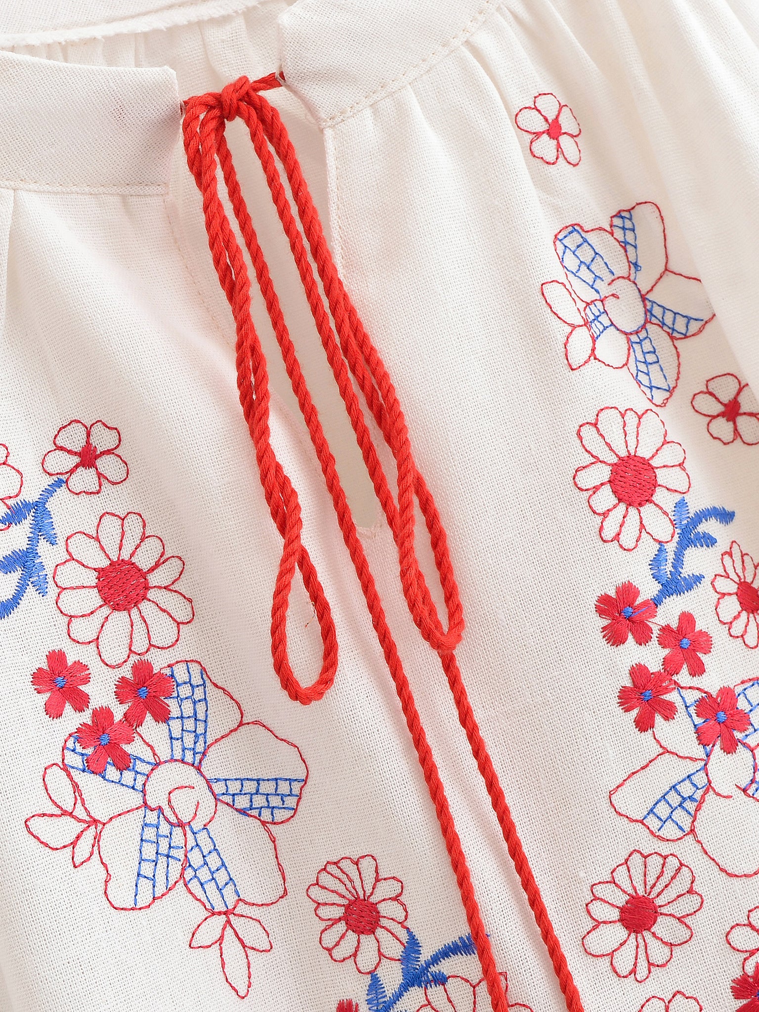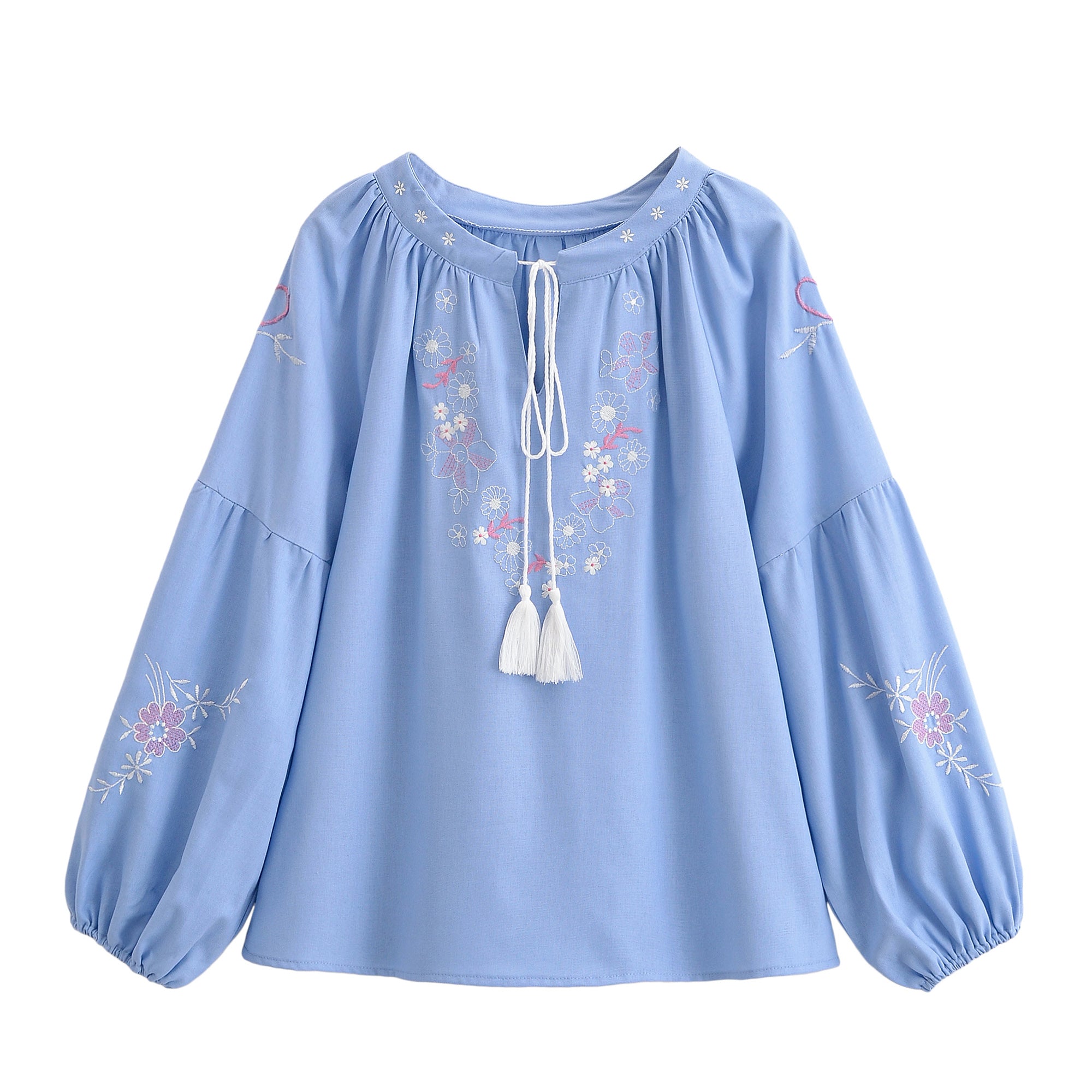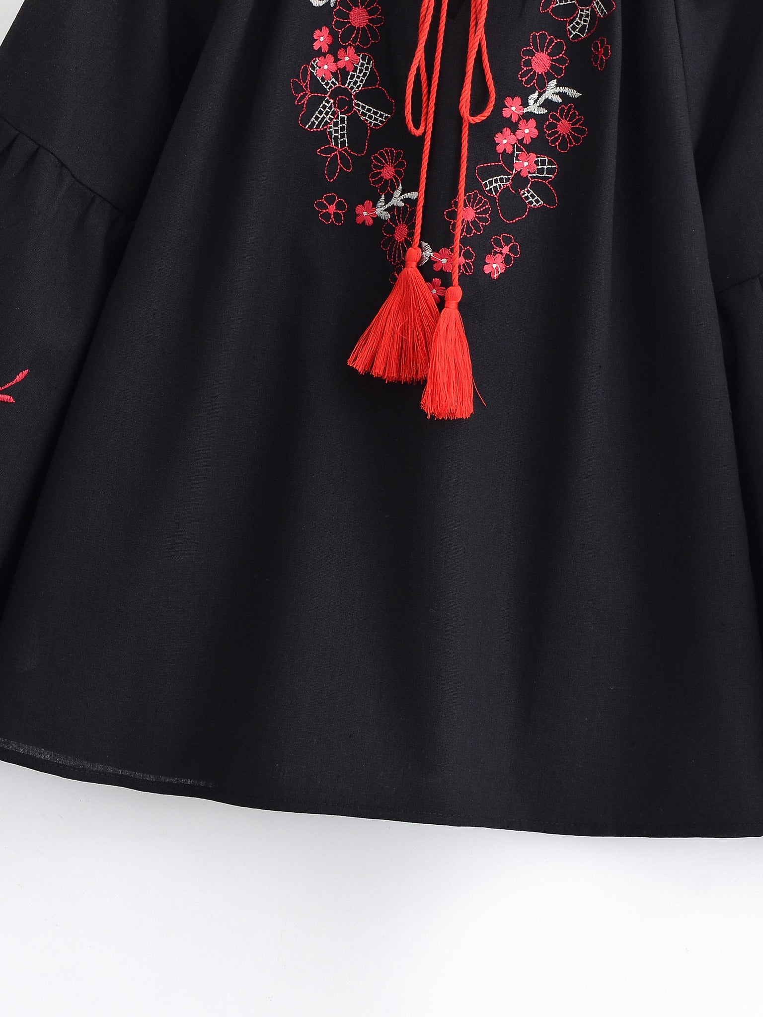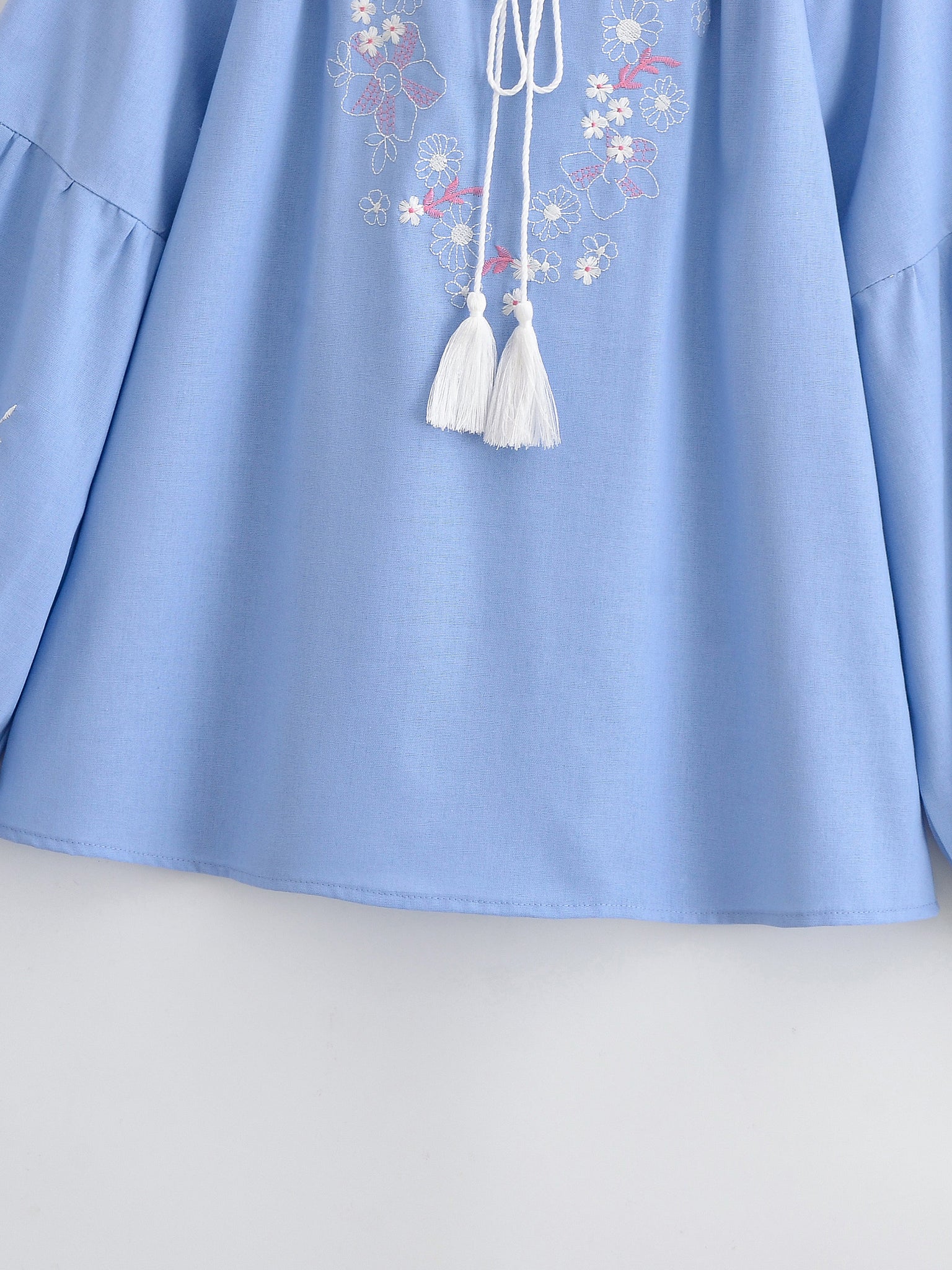 Retro Floral Embroidered ,Linen Cotton Blouse ,Lace-up Tassel Boho Shirts
