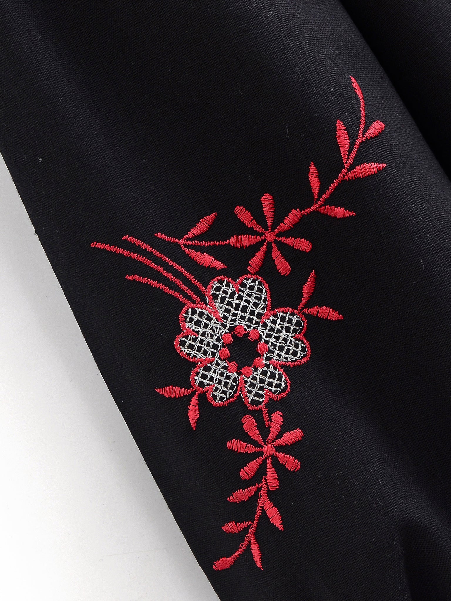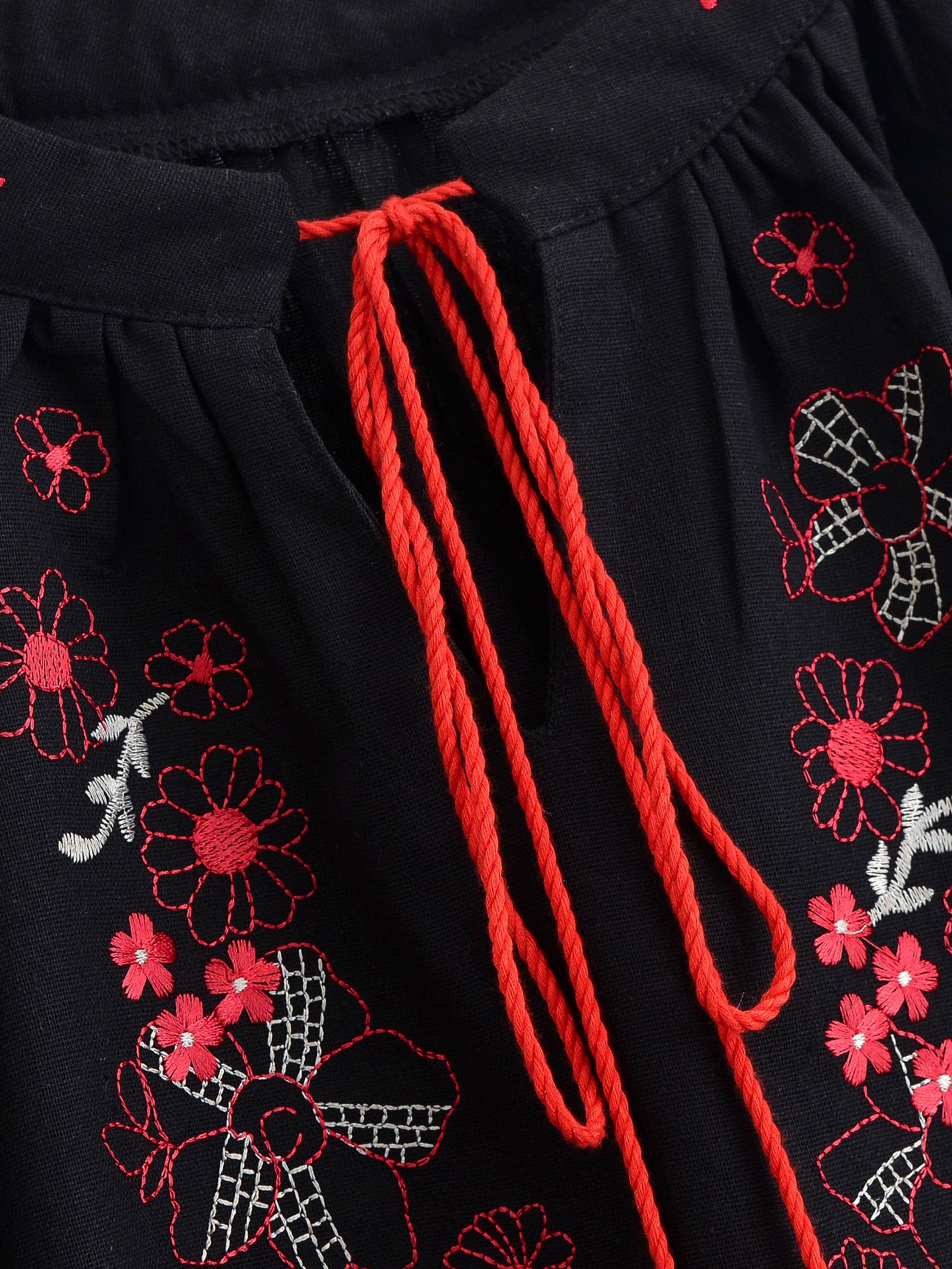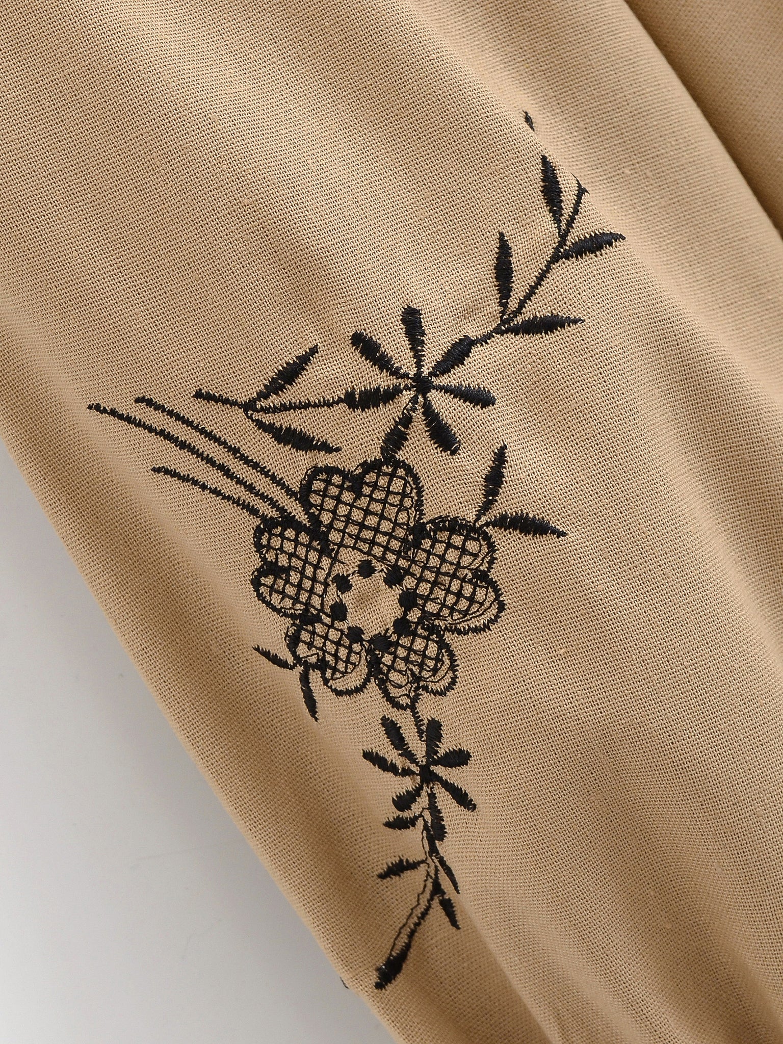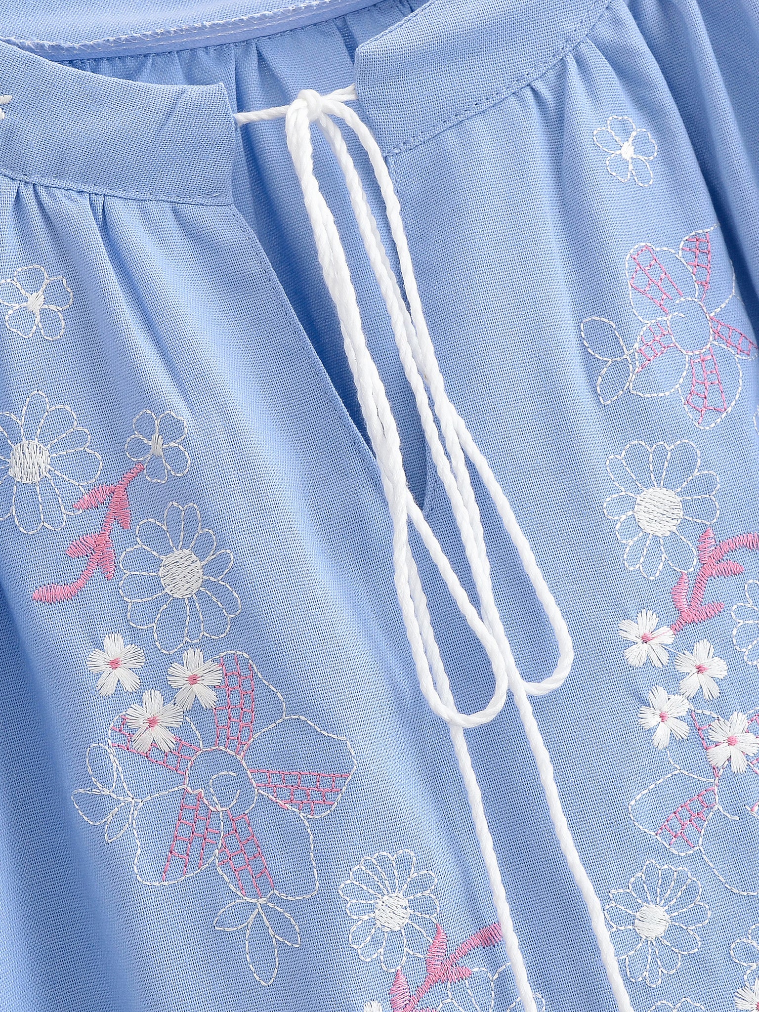 Retro Floral Embroidered ,Linen Cotton Blouse ,Lace-up Tassel Boho Shirts