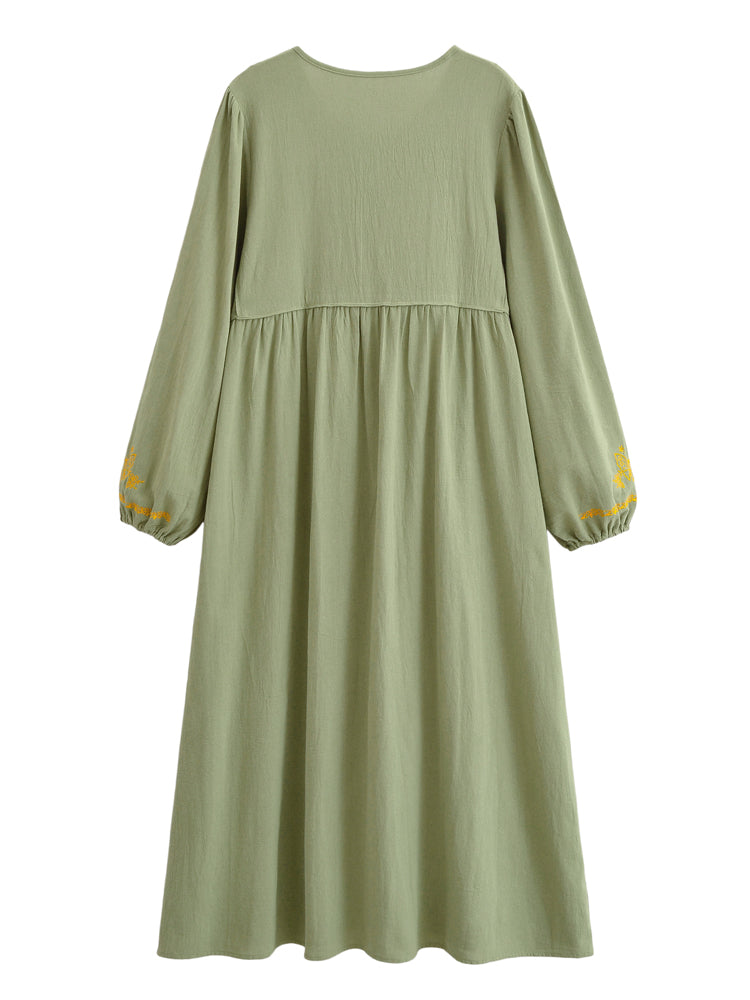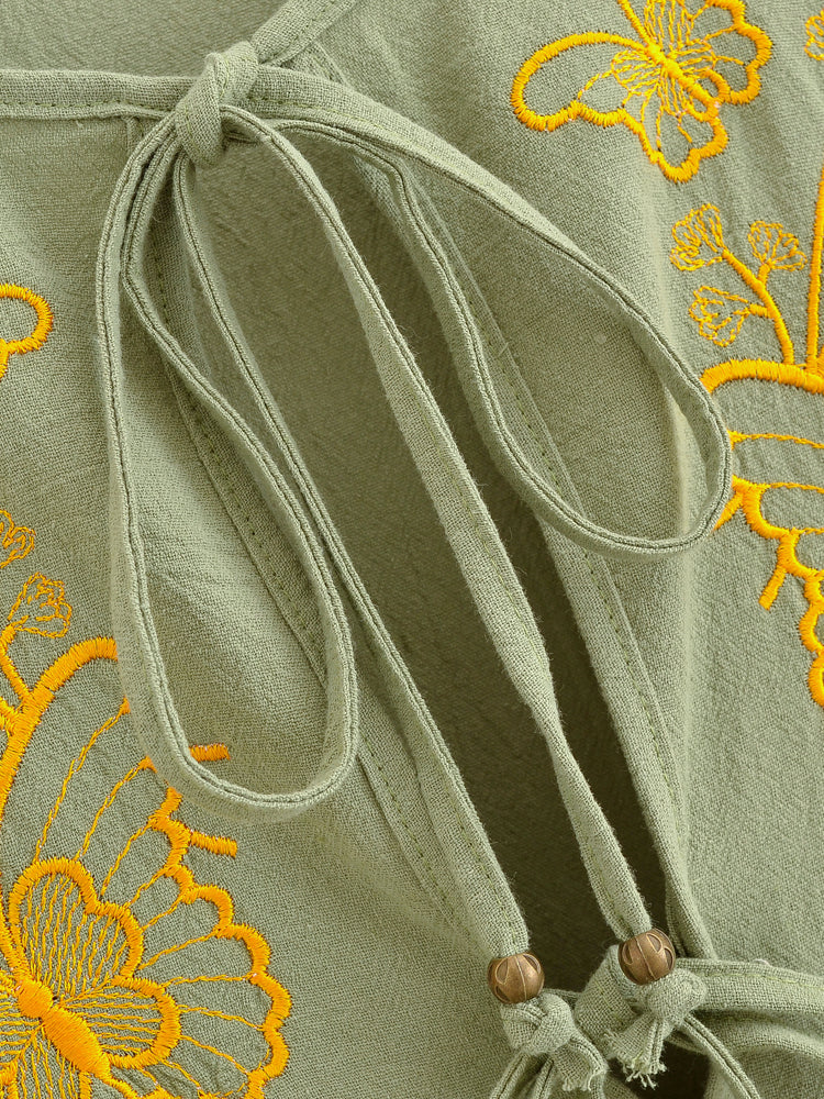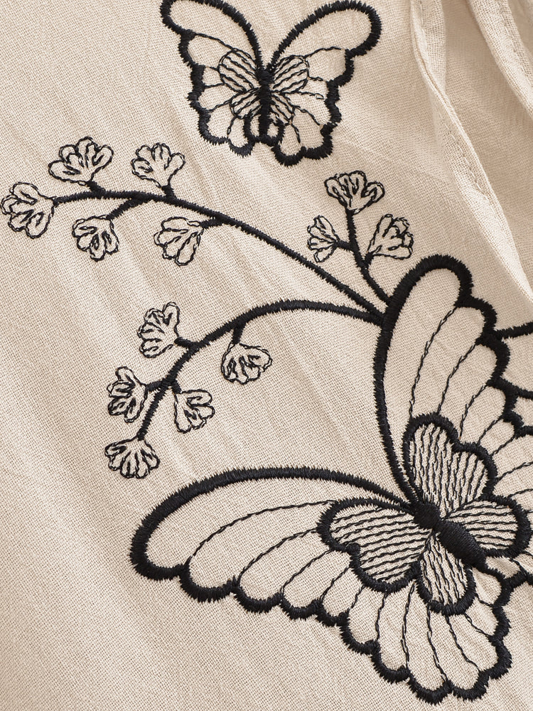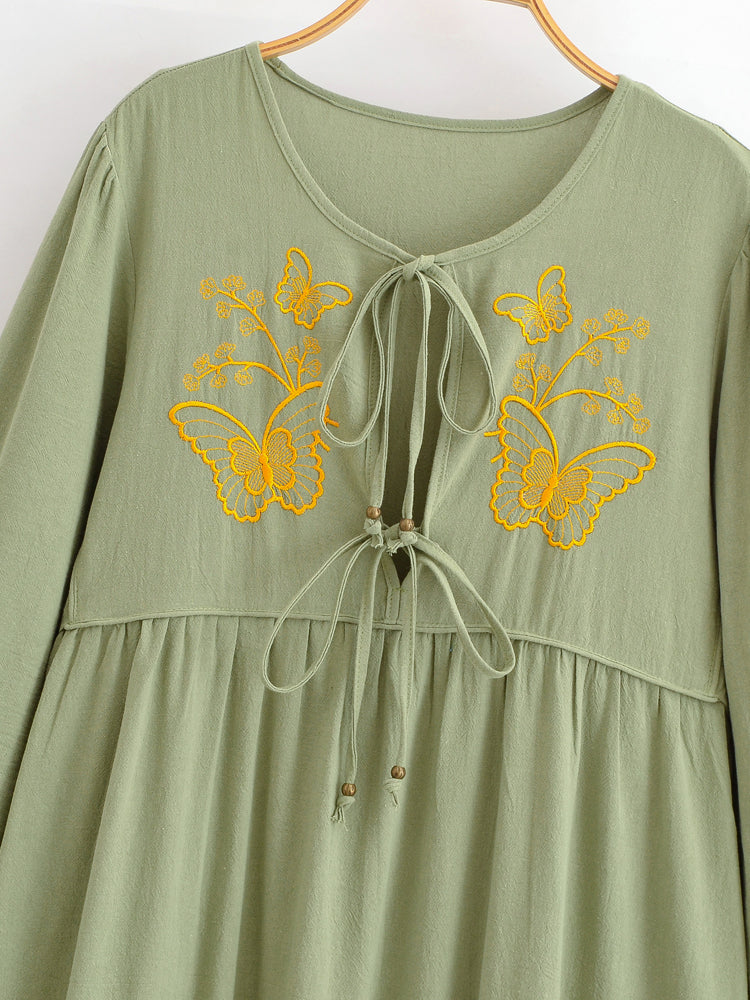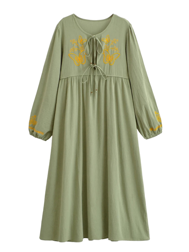 Retro Linen Cotton, Butterfly Embroidery ,Tassel Loose Boho Dress – Boho Queens