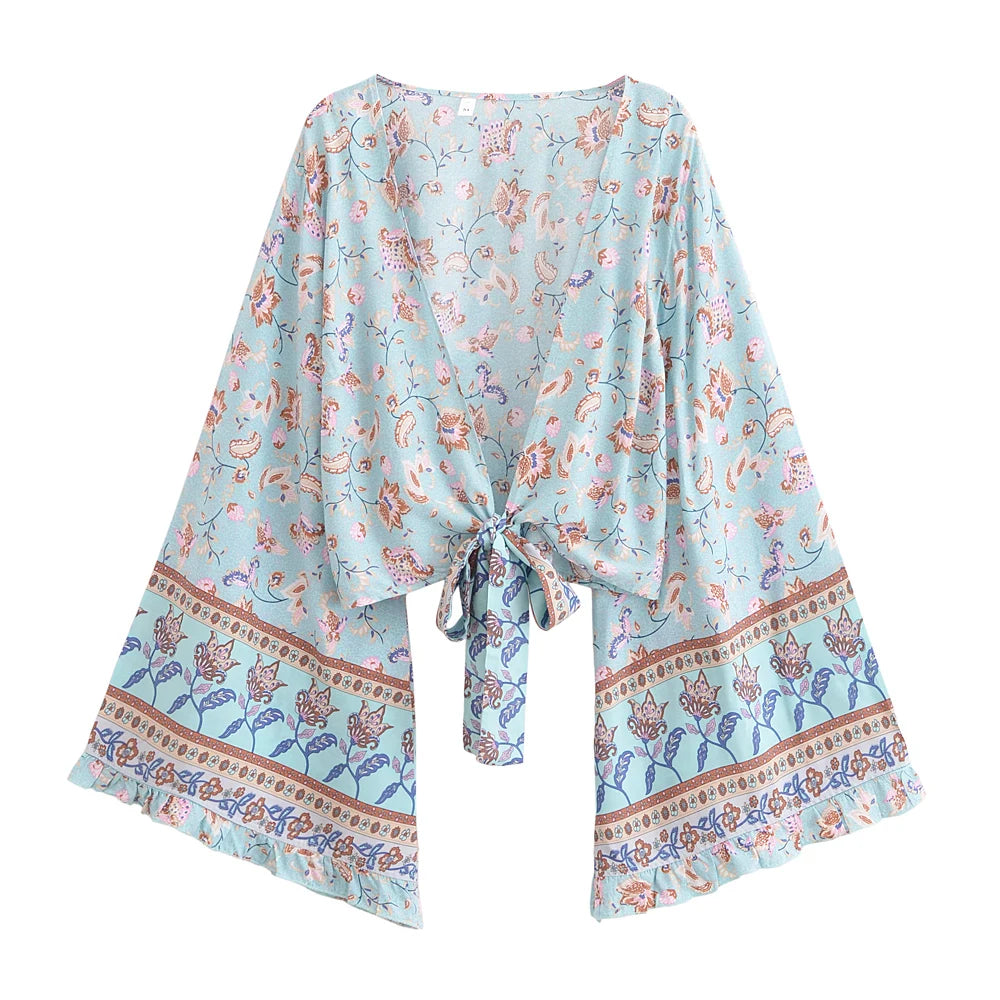 Wild Floral Print ,Short Kimono ,Bikini Cover-ups – Boho Queens